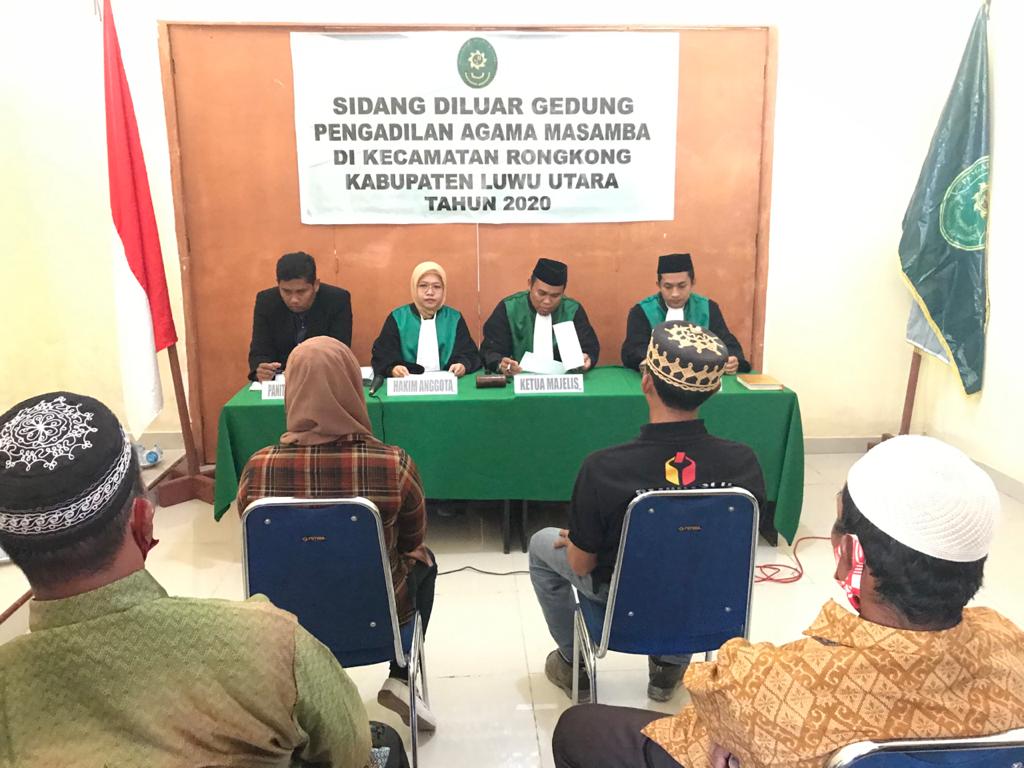 Dengan niat ibadah dan demi memaksimalkan pelayanan kepada masyarakat, pada hari ini PA Masamba memiliki agenda besar yakni melaksanakan sidang keliling di kecamatan rongkong yang dulunya nama kecamatan ini adalah Limbong. Kecamatan Rongkong ini merupakan salah satu daerah yang sulit dijangkau pada kabupaten Luwu Utara. Jarak dari kecamatan rongkong ke kantor Pengadilan Agama Masamba adalah kurang lebih 65 kilometer. Dengan jarak segitu secara sepintas memang tidak begitu jauh, akan tetapi perlu di ketahui medan dan rute untuk menuju ke kecamatan rongkong cukup sulit dan ekstrim. Jalanan menuju kecamatan tersebut mendaki gunung dan menyusuri tebing yang mana pada jalur tersebut tidak jarang terjadi longsor bahkan saat tim survey PA Masamba melaksanakan survey demi kelancaran kegiatan sidang keliling ini, jalanan tersebut putus akibat longsor. Sehingga tim survey harus memarkirkan mobil sebelum daerah longsor, kemudian jalan kaki menyebrang daerah longsor dan dilanjutkan naik ojek ke lokasi tujuan. Dan tambahan di daerah kecamatan Rongkong tersebut tidak ada sinyal seluler baik indosat, telkomsel, XL dan lainnya. Sehingga pantas jika daerah ini dinyatakan salah satu daerah yang sulit terjangkau di kabupaten Luwu Utara dan sangat pantas untuk dilaksanakan sidang keliling di daerah tersebut untuk membantu dan mempermudah masyarakat pencari keadilan.