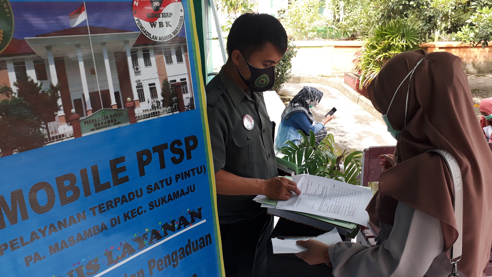 Kamis, 11 Februari 2021. Hari ini Pengadilan Agama Masamba kembali melaksanakan pelayanan sidang diluar gedung untuk yang kedua kalinya di tahun 2021 yang bertempat di kantor Urusan Agama Kec. Sukamaju Kab. Luwu Utara.Seperti sidang keliling sebelumnya, PA Masamba juga menghadirkan layanan mobile PTSP (PTSP keliling). Para pihak pengguna layanan merasa sangat puas dengan adanya inovasi pelayanan ini karena mereka tidak perlu lagi ke kantor PA Masamba yang jaraknya cukup jauh dan pastinya membutuhkan biaya transportasi yang tidak sedikit. Sidang kali ini juga diikuti oleh mahasiswa KKN STIH Damarica Palopo yang sedang melaksanakan program KKNPH di PA Masamba.
