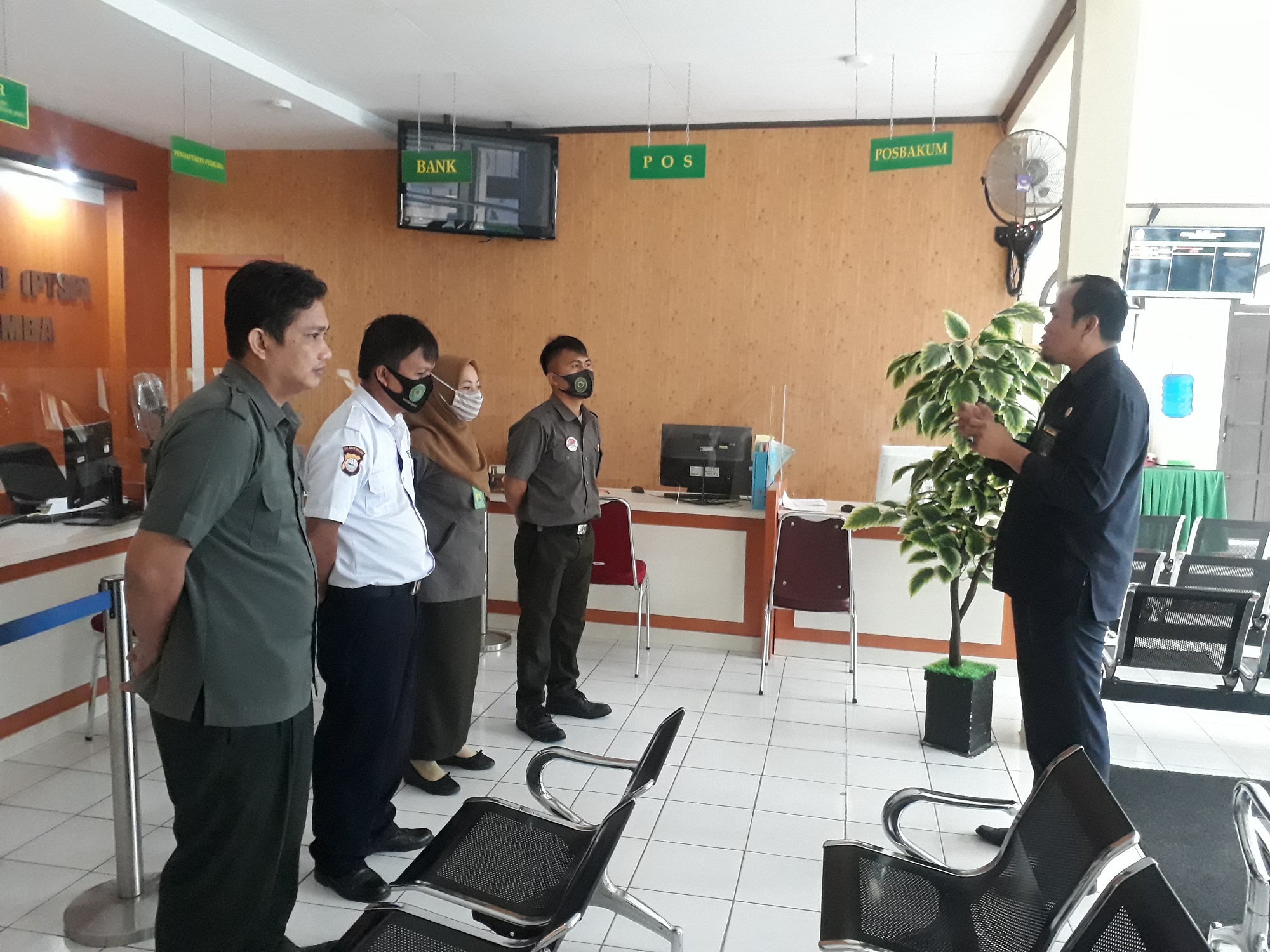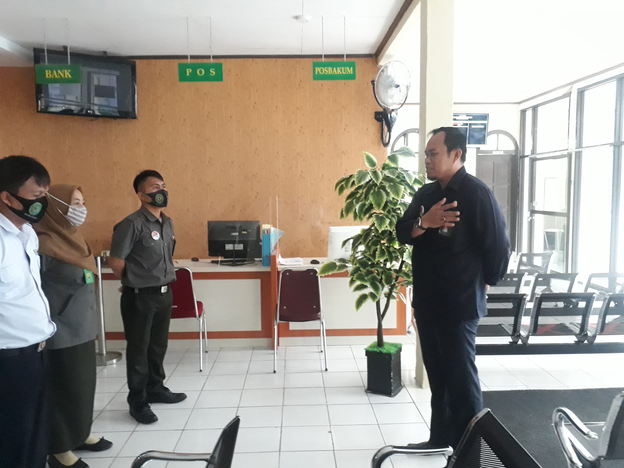 Pagi ini tadi pukul 08.00 WITA Bapak H. Mansur, Ks., S.Ag. memberikan briefing kepada petugas garda terdepan Pengadilan Agama Masamba. Dalam morning brief kali ini Bapak H. Mansur, Ks., S.Ag. menekankan protokol kesehatan dengan antisipasi-antisipasi untuk menghindari penularan di Pengadilan Agama Masamba. Dengan cara memberikan pulpen ke pihak pencari keadilan untuk digunakan secara khusus. Setelah pulpen digunakan selalu disemprot dengan cairan khusus untuk mensterilkan pulpun dan meja pelayanan. Selain itu juga Bapak H. Mansur menghimbau untuk selalu mengingatkan kepada pihak pencari keadilan untuk berpakaian yang rapi dan sopan di lingkungan Pengadilan Agama Masamba.