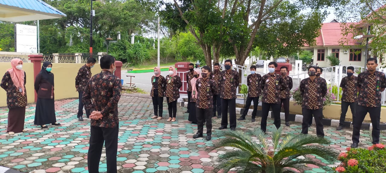 Pengadilan Agama Masamba kembali melaksanakan apel sore dengan tetap menerapkan protokol kesehatan ditengah pandemi Covid-19, guna mengakhiri pelaksanaan tugas dalam satu minggu terakhir. Apel di laksanakan di Halaman Pengadilan Agama Masamba. Pembina Apel sore yaitu Hakim Pengadilan Agama Masamba Bapak Hasyim, Lc. Apel sore di hadiri oleh pimpinan Pengadilan Agama Masamba, Majelis Hakim, Pejabat Struktural dan fungsional serta seluruh karyawan dan karyawati Pengadilan Agama Masamba. Apel Sore ini dipimpin oleh Mansyur Hasaneng,S.H.I.