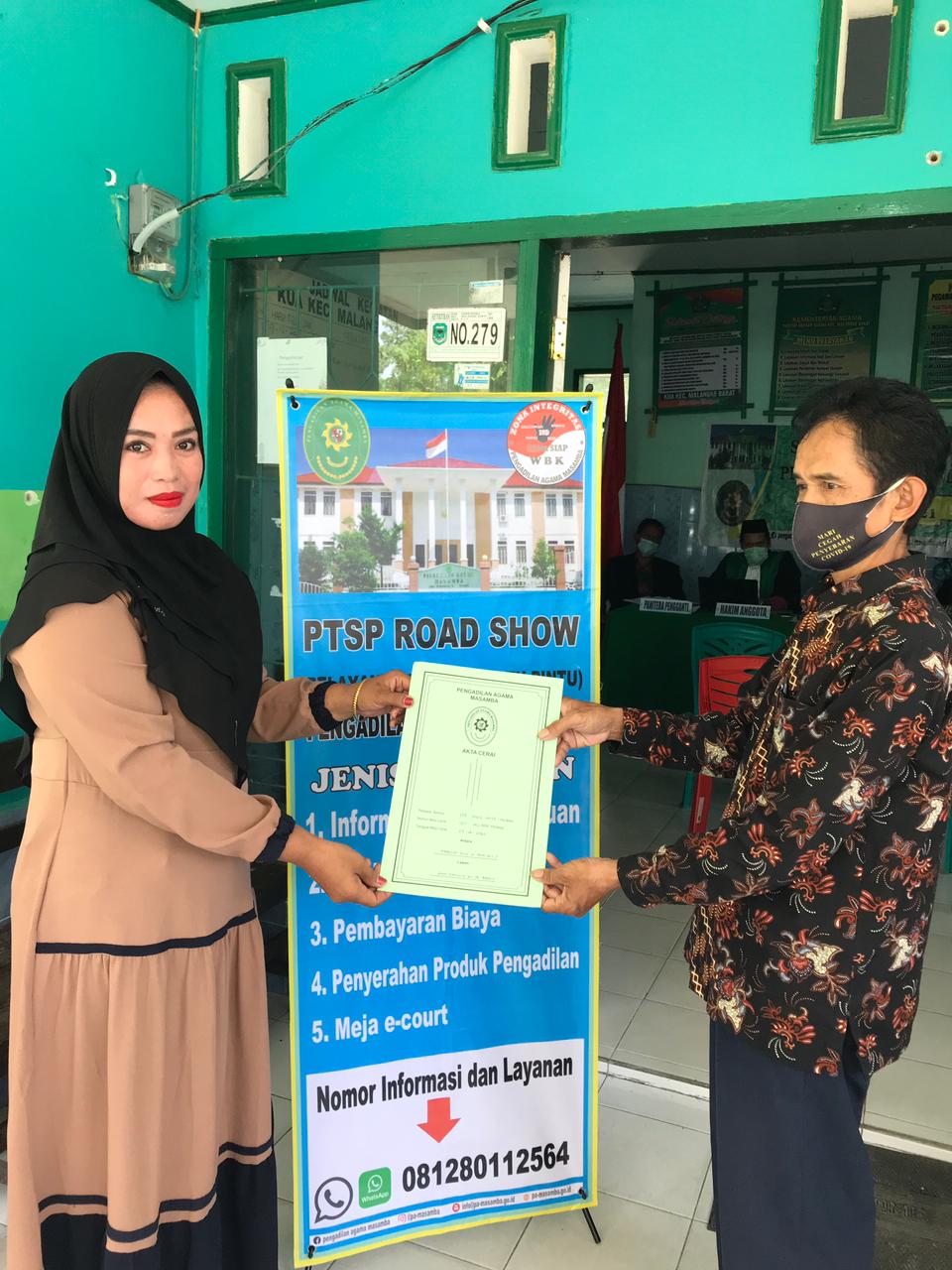 Bertempat di Kantor Urusan Agama Kecamatan Malangke Barat sidang kelilingdan Penyerahan Akta Cerai oleh petugas PTSP.
