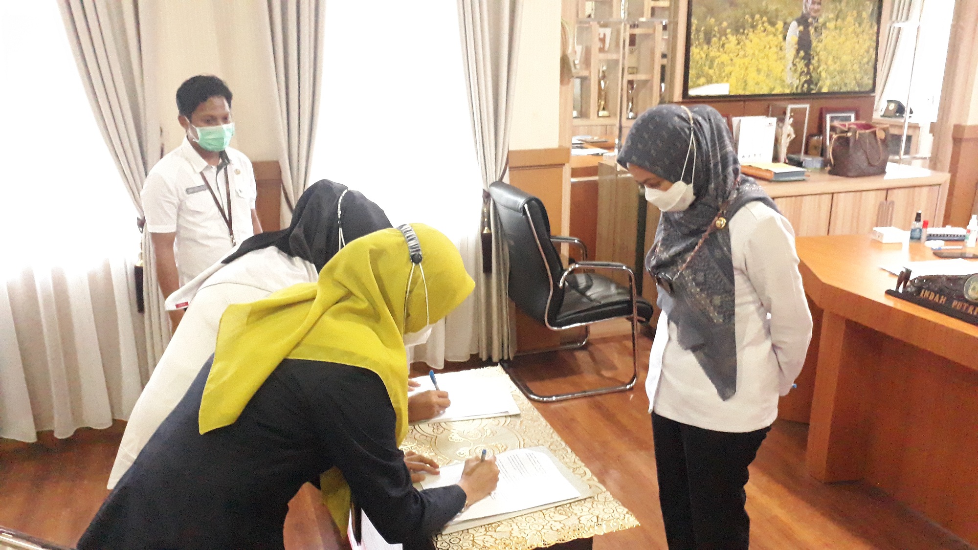 Ketua Pengadilan Agama Masamba Ibu Laila Syahidan, S.Ag., M.H. bersama Wakil Ketua Ibu Sulastri Suhani, S.H.I., Panitera Bapak Drs. H. Tawakkal, M.H., Sekretaris Bapak Jamaluddin, S.H. dan Kasub PTIP Bapak Andi Arfah, S.E. mengadakan penandatanganan perjanjian kerja sama dengan Dinas Kependudukan dan Pencatatan Sipil Kabupaten Luwu Utara.