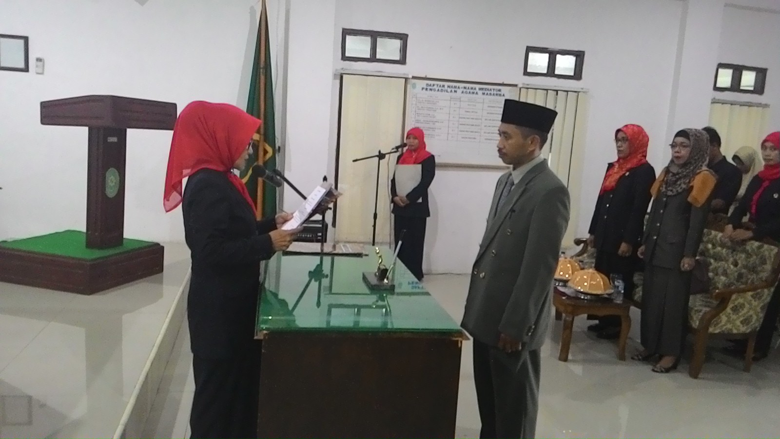 Bertempat di Ruang Sidang Kantor Pengadilan Agama Masamba (19/05/2016), Pengadilan Agama Masamba kembali melaksanakan prosesi pengambilan sumpah jabatan dan pelantikan pejabat Panitera Muda Permohonan di lingkungan Pengadilan Agama Masamba.