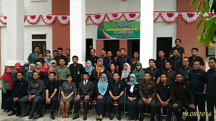 Jum’at, tanggal 19 Agustus 2016 pukul 08.00 wib, bertempat di halaman Pengadilan Agama Masamba, Pengadilan Agama Masamba dan Pengadilan Negeri Masamba melaksanakan upacara pengibaran bendera merah putih dalam rangka memperingati Hari Ulang Tahun Ke-71 Mahkamah Agung Republik Indonesia dengan tema “Penguatan Akuntabilitas Peradilan Dalam Rangka Menggapai Kembali Kepercayaan Publik”.