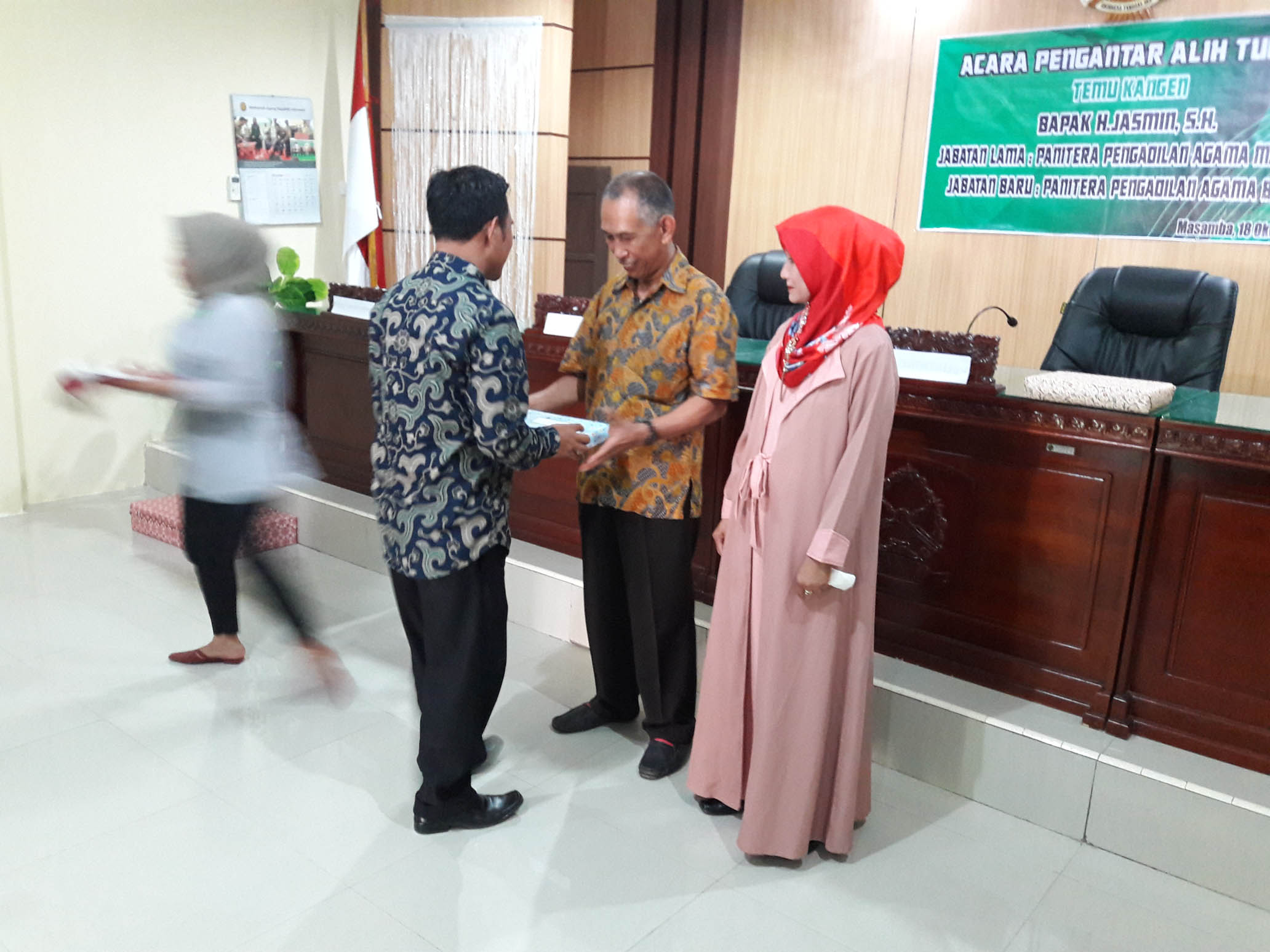 Bertempat di Ruang Sidang Utama Pengadilan Agama Masamba pada hari Jum’at, 18 Oktober 2019 digelar acara pengantar alih tugas Panitera Agama Masamba, Bapak H. Jasmin, S.H, menjadi Panitera Pengadilan Agama Barru.