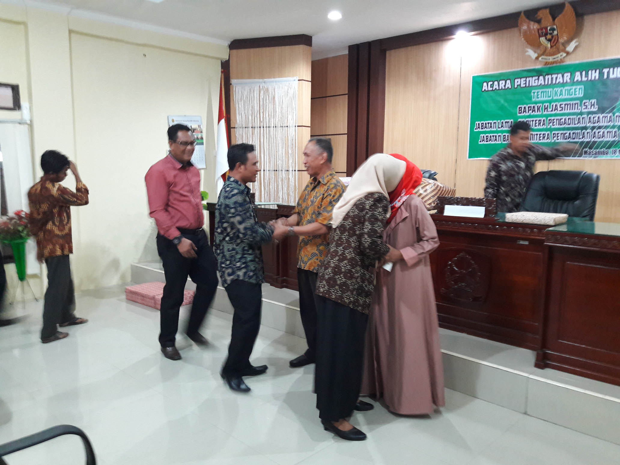 Acara dihadiri oleh para tamu undangan Hakim Pejabat Struktural dan Fungsional, Honoerer, dan para tamu undangan lainnya. Acara dilanjutkan dengan pemberian cindera mata dan Keluarga Pengadilan Agama Masamba mengucapkan selamat bertugas ditempat yang baru Bapak H. Jasmin, S.H.