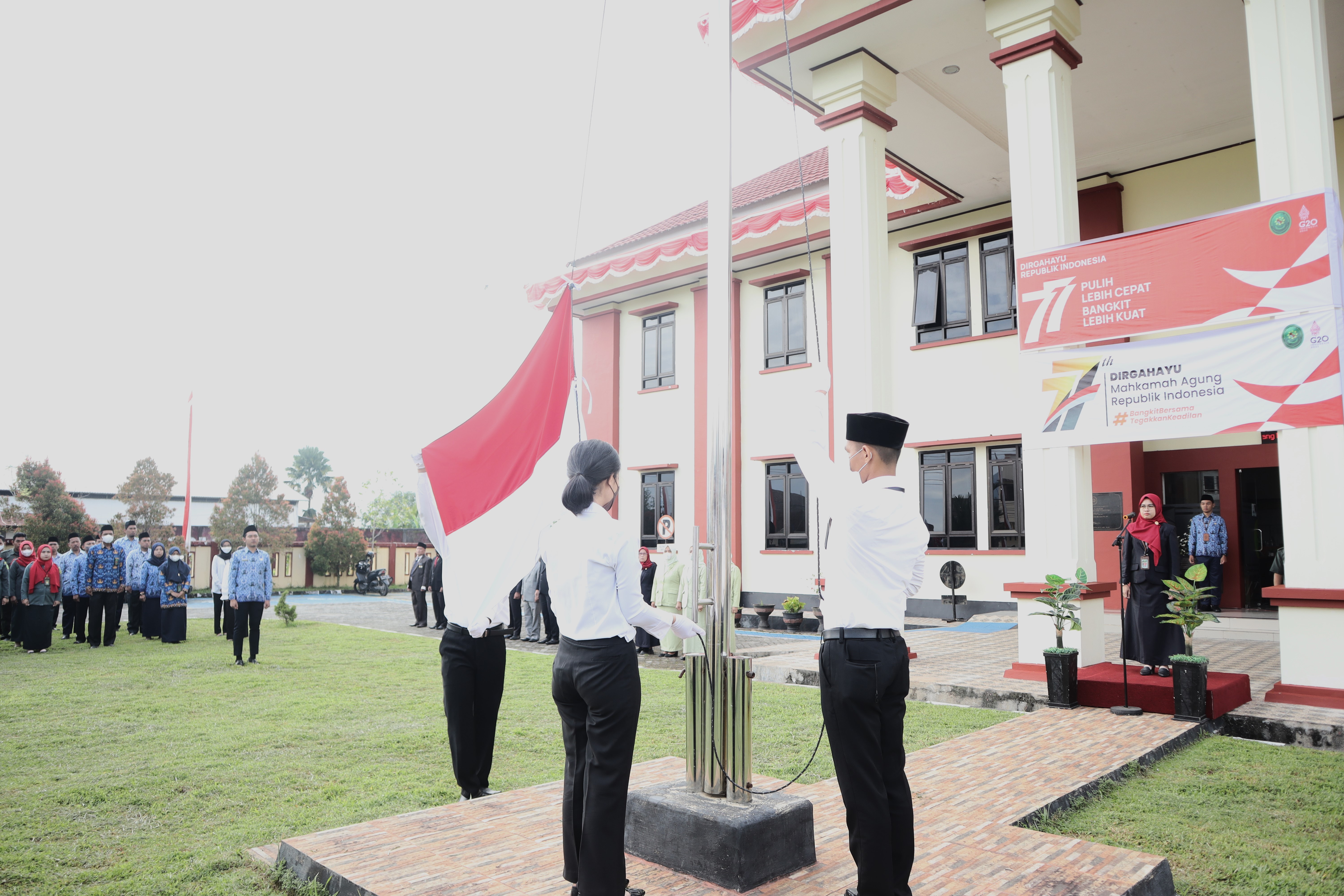 Pengadilan Agama Masamba bersama Pengadilan Negeri Masamba menggelar Upacara Peringatan Hari Ulang Tahun Kemerderkaan Republik Indonesia ke 77 Tahun di Halaman Pengadilan Negeri Masamba.