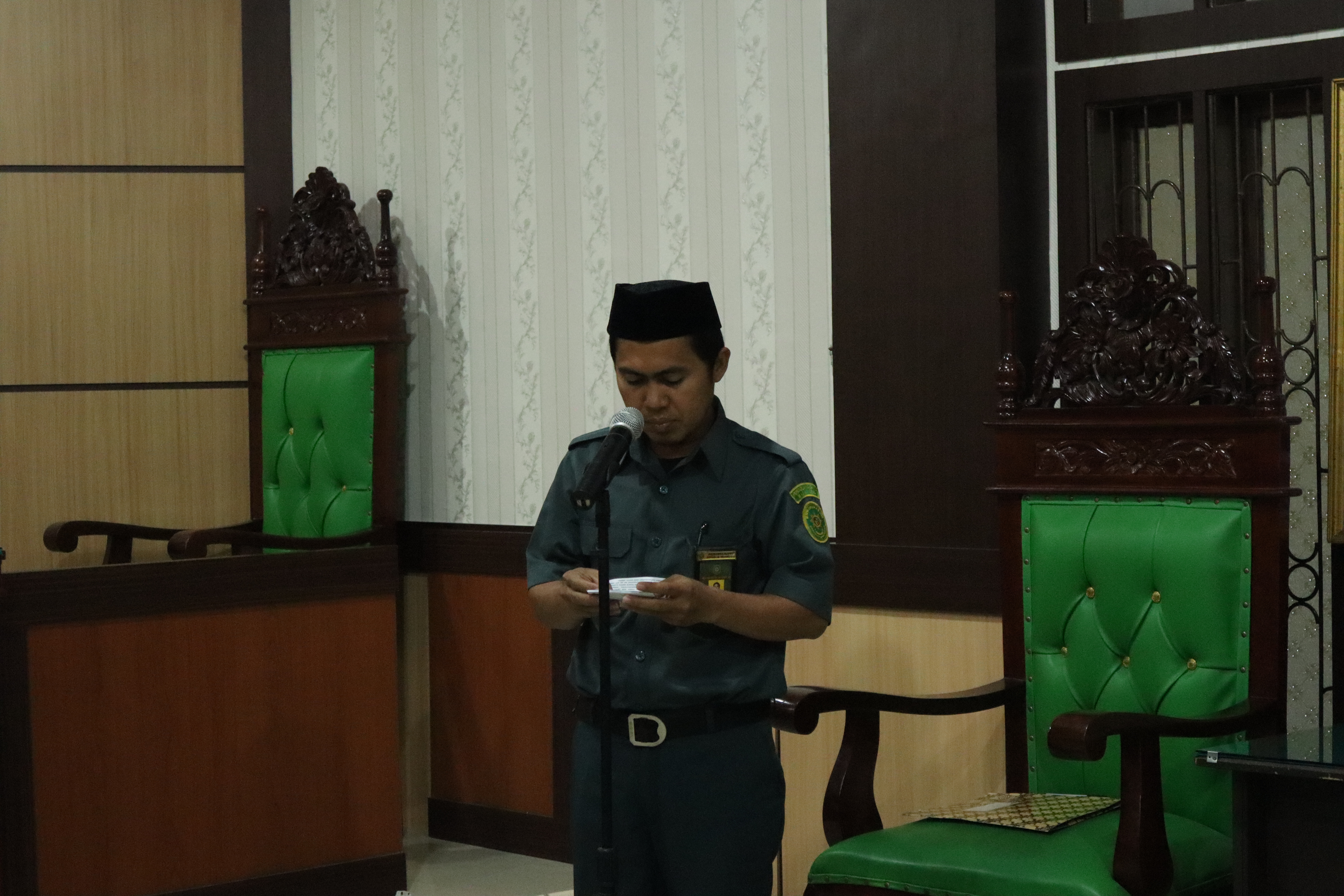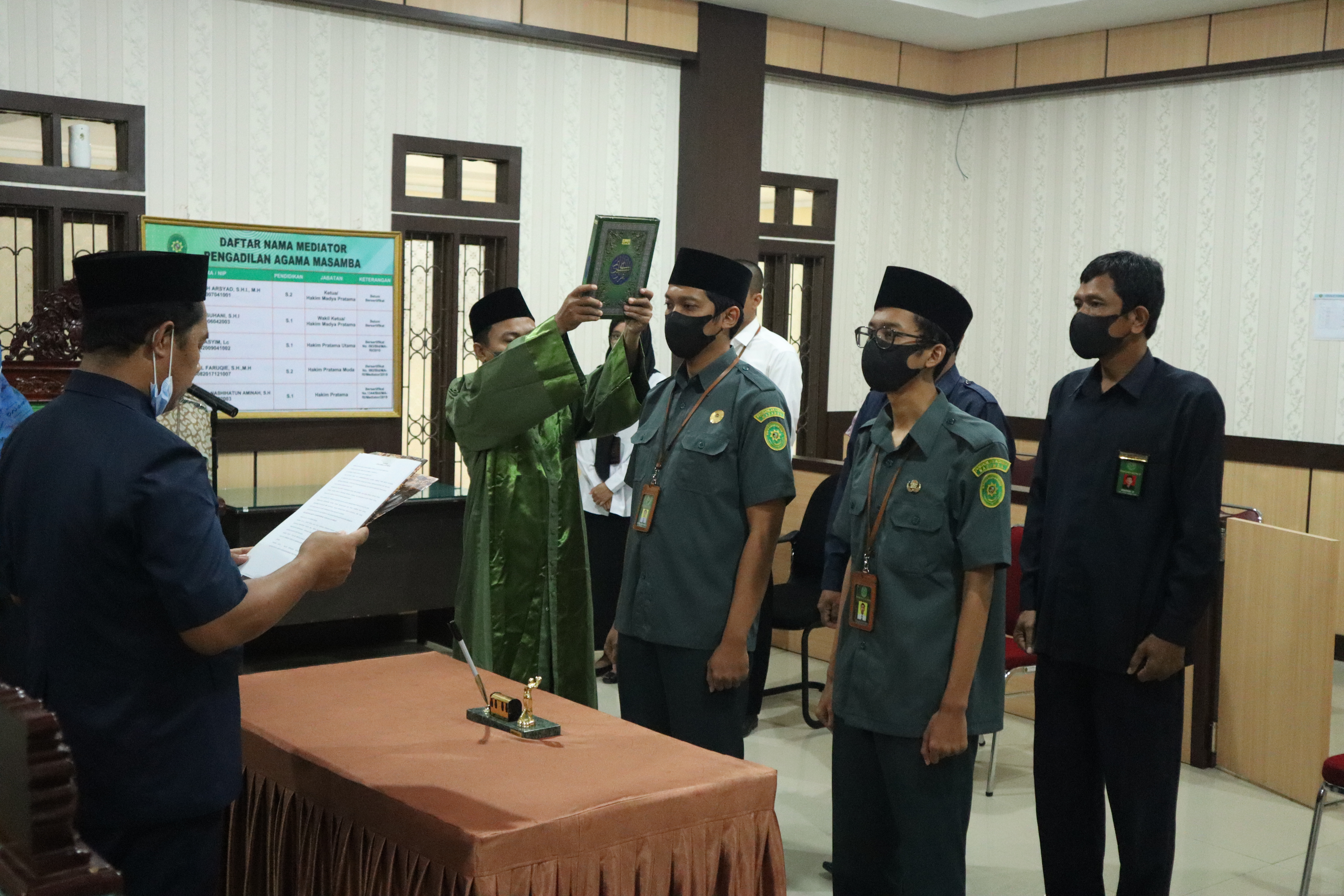 Pelantikan dilanjutkan pembacaan dan penandatanganan Berita Acara Sumpah oleh Ketua Pengadilan Agama Masamba Amirullah Arsyad, S.H.I., M.H. Adapun yang bertugas sebagai saksi-saksi yaitu Andi Arfah, S.E. dan Awaluddin, S.P., S.H. dan rohaniawan yaitu Wahuyddin Wahid, S.H.