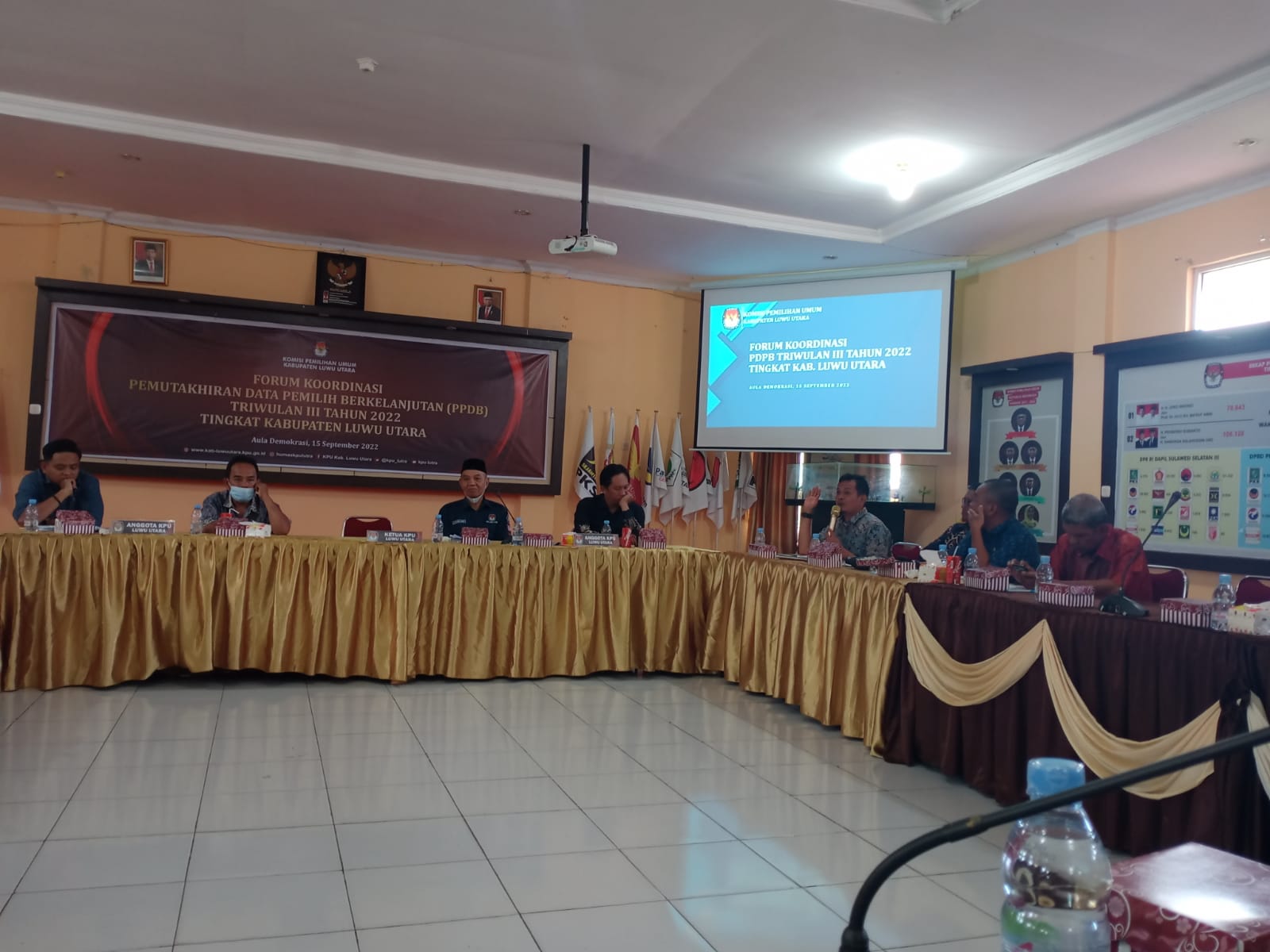 Rapat koordinasi ini merupakan yang terakhir dilakukan sebelum tahapan pemilu dimulai bulan depan, seperti yang ungkapkan oleh ketua KPU Luwu Utara dalam sambutannya saat membuka kegiatan.Turut hadir memenuhi undangan rapat ini antara lain Ketua Bawaslu didampingi seorg komisionernya Ibrahim Umar, juga dari Kemenag Luwu Utara dan Pengadilan Agama Masamba. Sementara dari pihak Pemda sendiri terlihat hadir wakil dari Bagian Pemerintahan, sekretaris PMD, Dinas Sosial dan Dinas DukCapil.