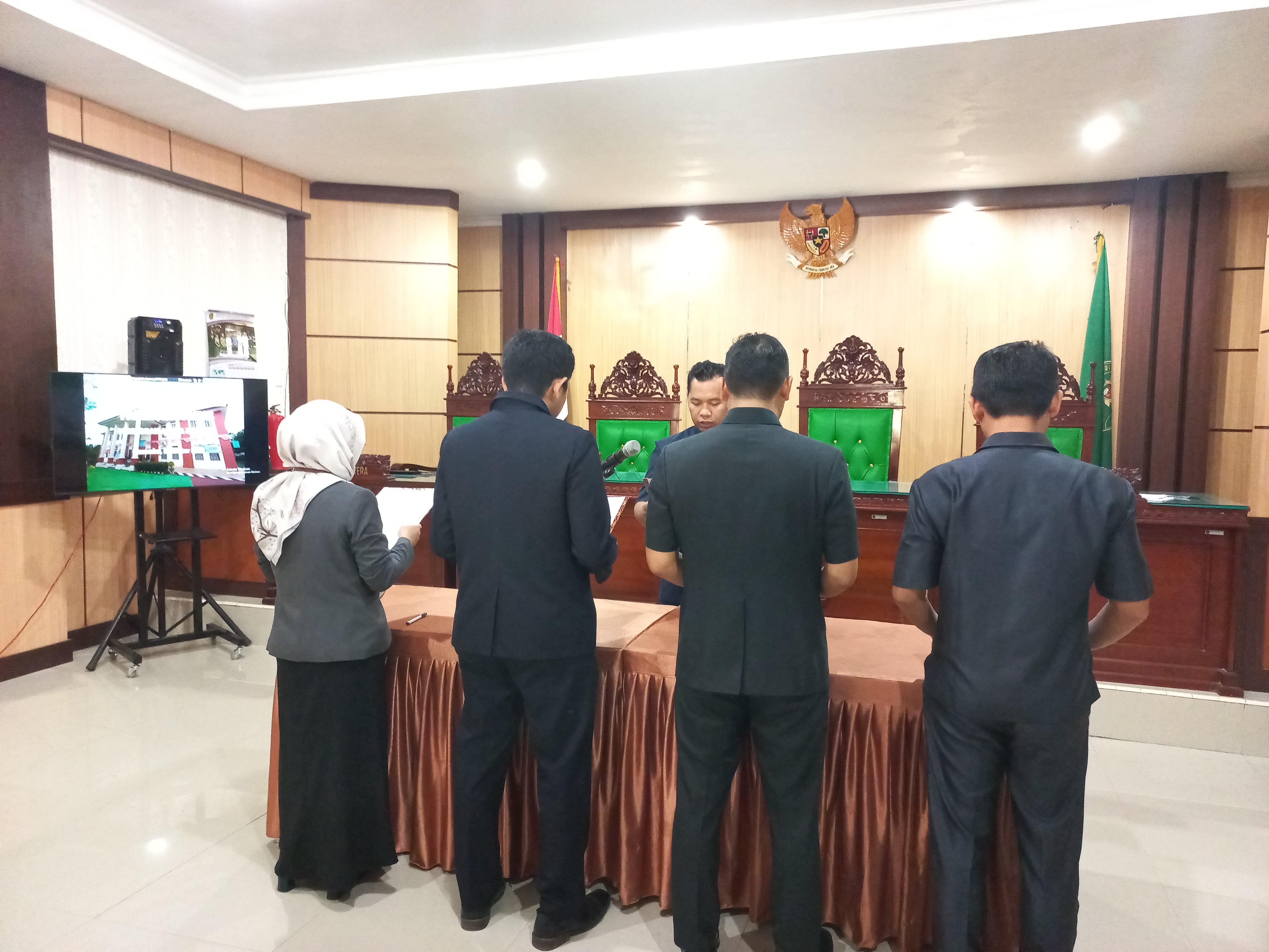 Masamba – Ketua Pengadilan Agama Masamba, Amirullah Arsyad, S.H.I., M.H. memimpin kegiatan pengucapan pakta integritas seluruh pegawai PA Masamba yang terdiri dari wakil ketua, hakim, panitera, sekretaris, pejabat struktural, pejabat fungsional, staf, dan CPNS yang dilaksanakan di Aula Ruang Sidang Utama Pengadilan Agama Masamba pada hari Selasa, 4 Oktober 2022 pukul 09.00-09.30 WITA.