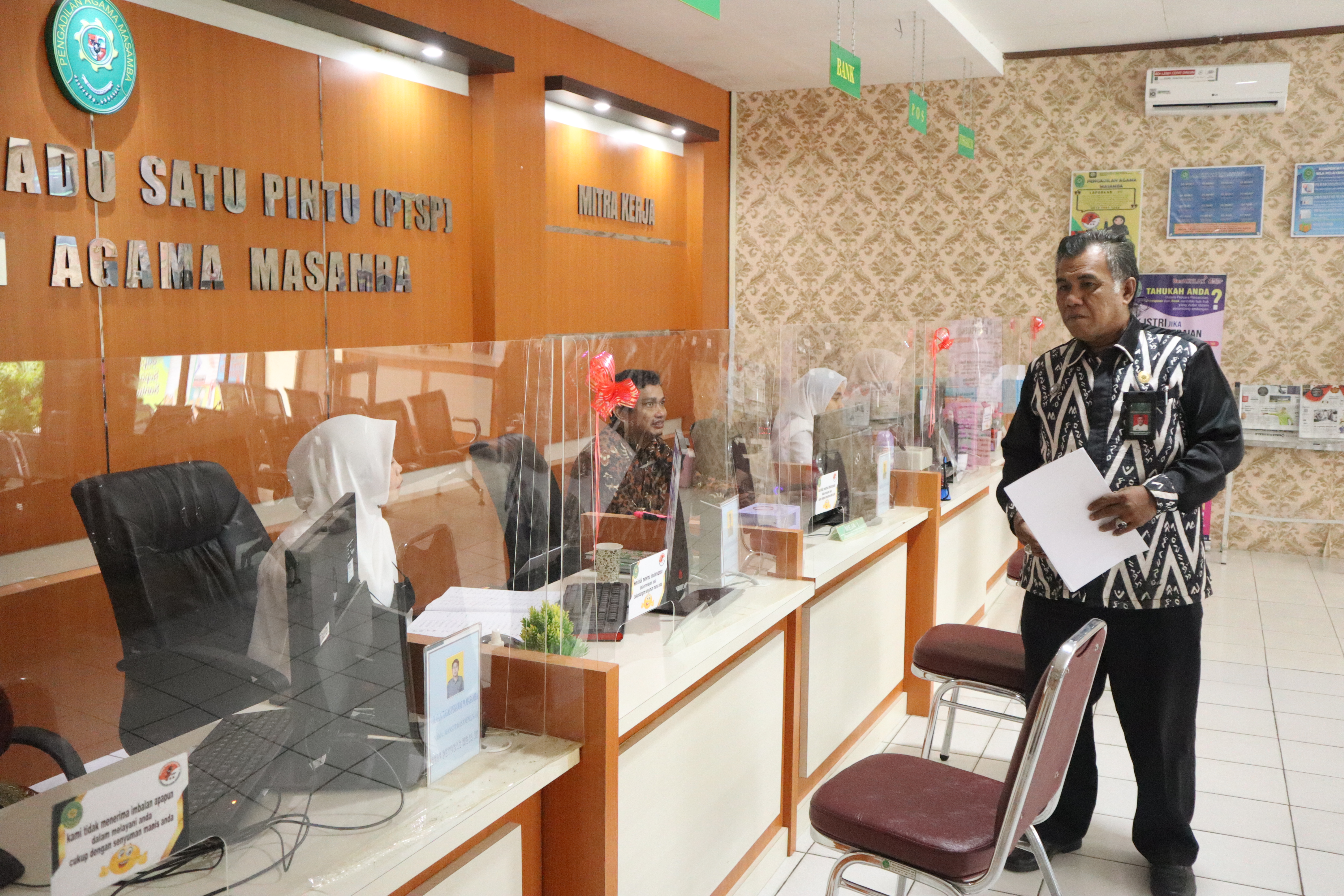 Tim Monitoring PTA Makassar pun melakukan pengawasan ke bagian Pelayanan terpadu Satu pintu (PTSP) PA Masamba.Bapak Fuad juga menanyakan nama dan tugas masing-masing petugas PTSP pada Pengadilan Agama Masamba.
