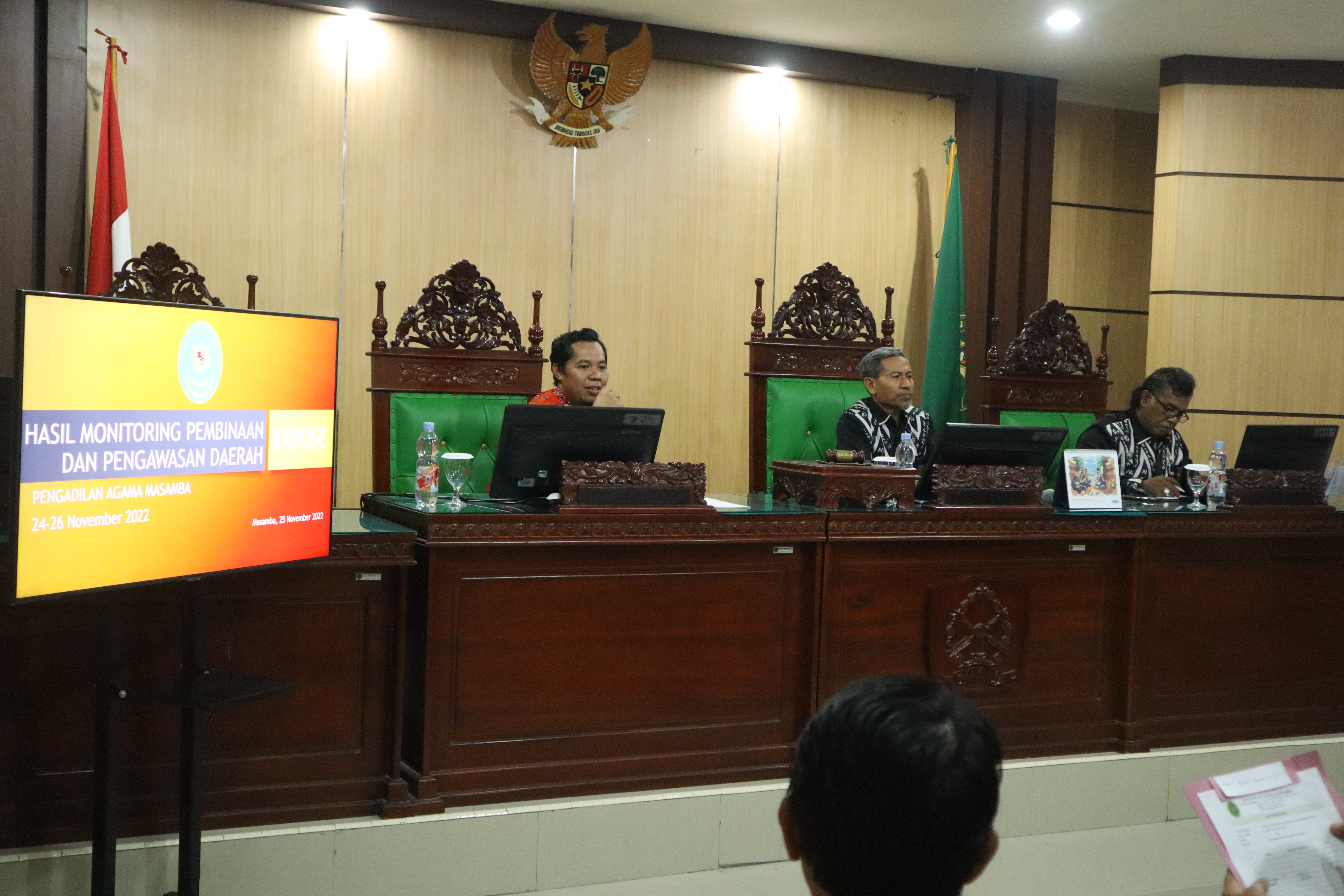 Setelah selesai montoring pada semua bagian pada Pengadilan Agama Masamba Tim Monitoring melaksanakan expose. Kemudian penjelasan hasil monitoring temuan dan temuan baru yang disampaikan tim monitoring PTA Makassar.Ketua Tim Monitoring menyerahkan hasil pemeriksaan kepada ketua Pengadilan Agama Masamba Amirullah Arsyad, S.H.I., M.H. Diakhiri dengan foto Bersama tim Monitoring Bersama seluruh aparatur Pengadilan Agama Masamba.