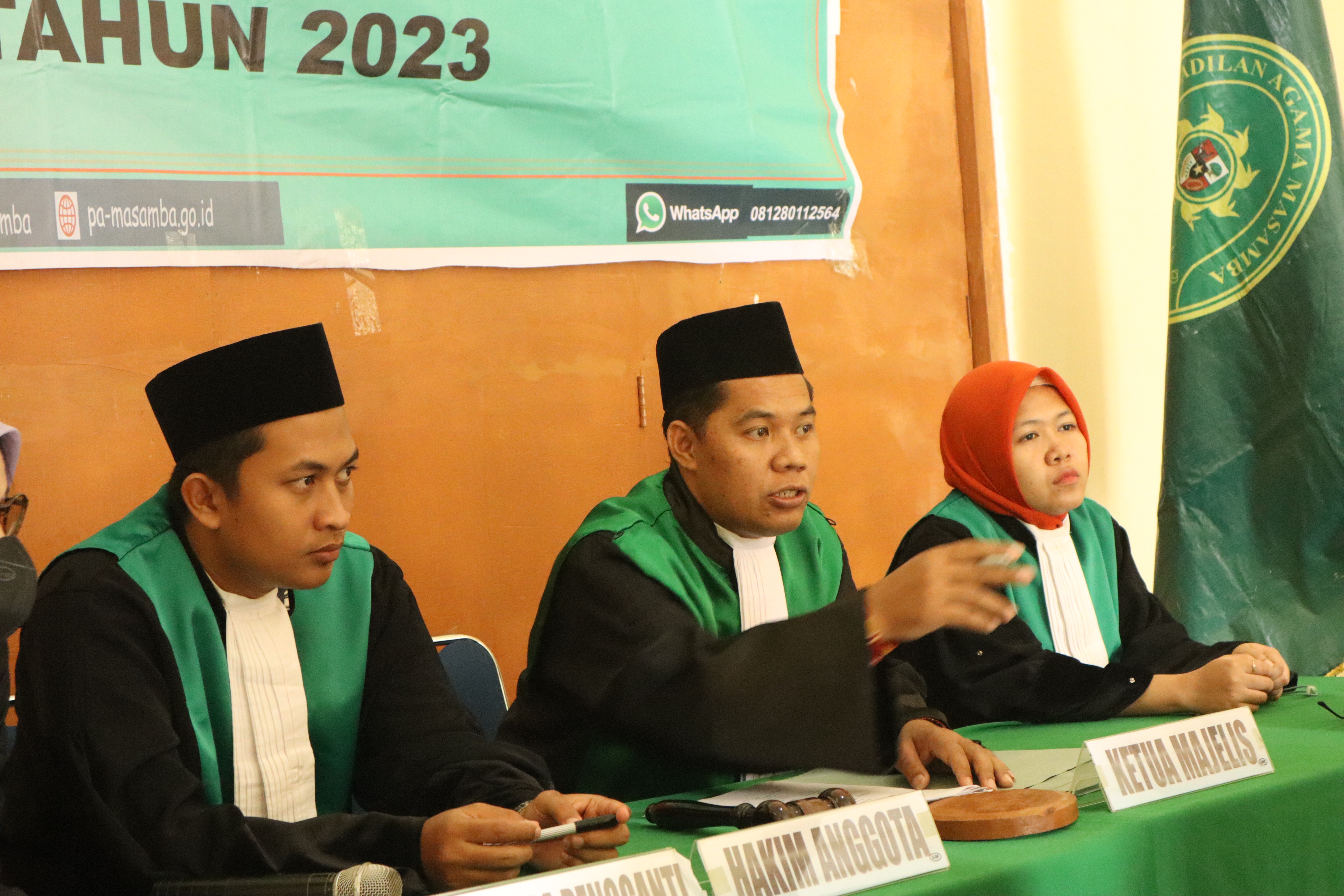 Rongkong, 3 Maret 2023 - YM. Amirullah Arsyad. S.H.I., M.H., selaku Ketua Majelis Hakim bersama dua hakim anggota YM. Fariq Al Faruqie, S.H., M.H., dan YM. Rahmayani Nashihatun Aminah, S.H., serta Haryati, S.H sebagai Panitera Pengganti melakukan sidang pemeriksaan di gedung KUA Kecamatan Rongkong, kabupaten Luwu Utara.