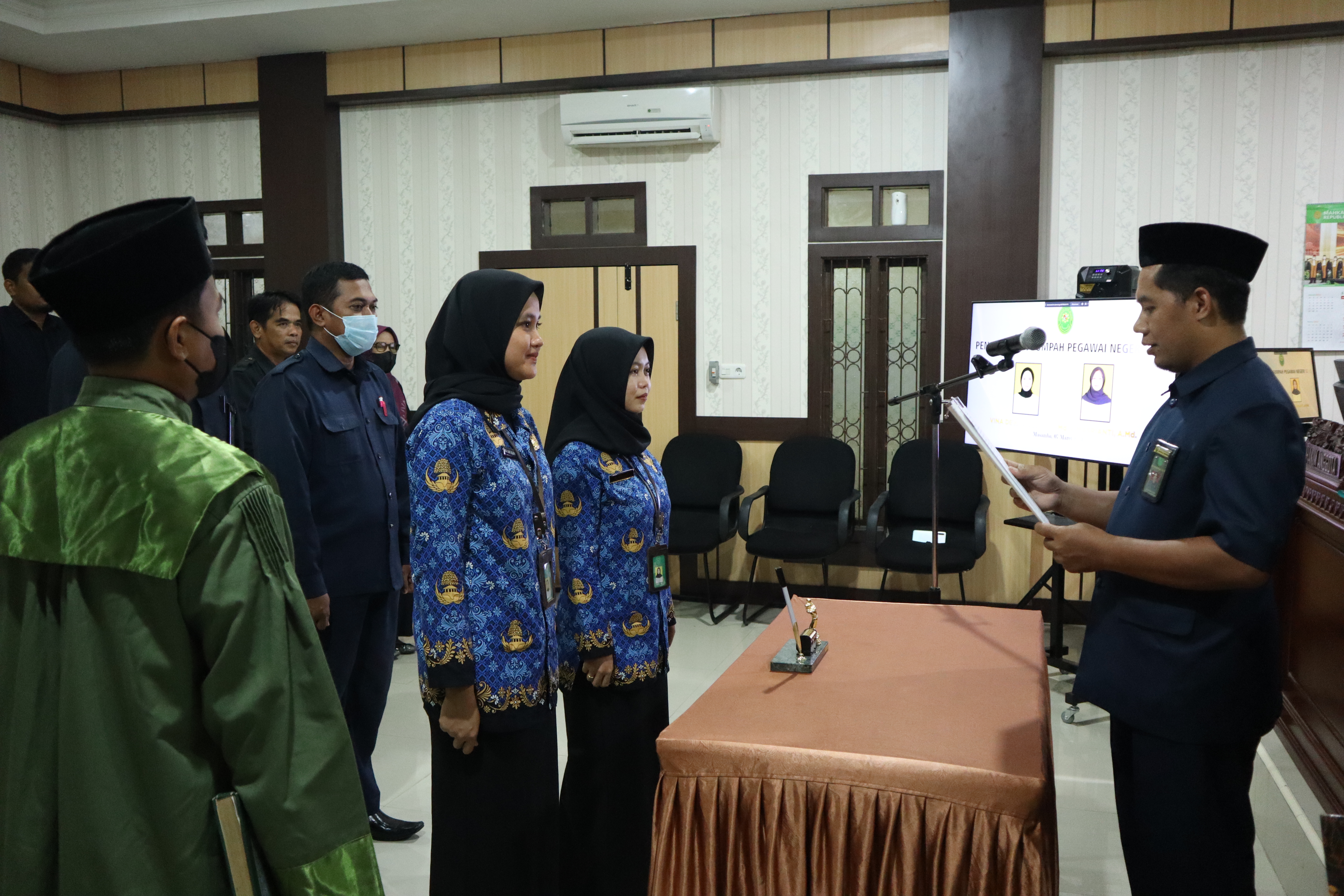 Calon Pegawai Negeri Sipil (CPNS) dengan jabatan Pengelola Perkara atas nama Vina Dewi Agustin, A.Md. dan Masrianti, A.Md. telah diambil sumpah lebih dahulu sesuai dengan terbitnya Surat Keputusan dari Ketua Pengadilan Tinggi Agama Makassar Dr. Drs. H. Muh. Abduh Sulaeman, S.H., M.H. Terhitung Mulai Tanggal 01 Maret 2023. Dihadiri seluruh aparatur Pengadilan Agama Masamba pelantikan yang dilaksanakan di Ruang Sidang Utama berlangsung dengan khidmat.