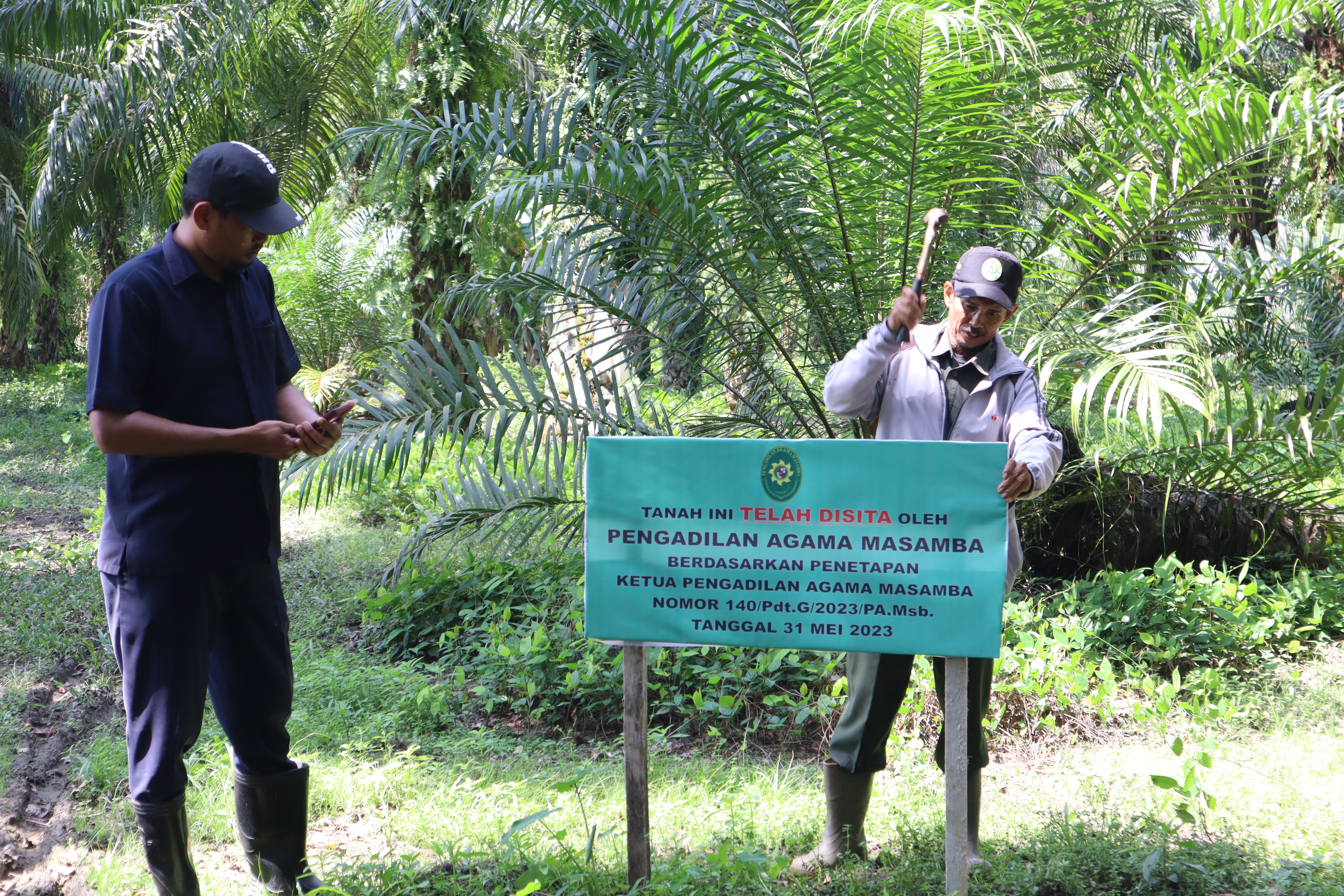 Masamba – Rabu (31/5/2023) Panitera Pengadilan Agama Masamba Khumaeni, S.H.I., M.H. memimpin pelaksanaan Sita Jaminan (Conservatoir Beslag) pada perkara kewarisan nomor 140/ Pdt.G/2023/PA.Msb terhadap objek sengketa berupa tanah kebun sawit yang bertempat di Dusun Lengkong Topao, Desa Munte, kecamatan tanalili, kabupaten Luwu Utara berjalan dengan lancar dan sukses. Pelaksanaan Sita ini didasarkan atas pemohonan Peletakan Sita Jaminan (Conservatoir Beslag) nomor 140/Pdt.G/2023/PA.Msb oleh Penggugat terhadap objek sengketa yang dimiliki oleh Tergugat.