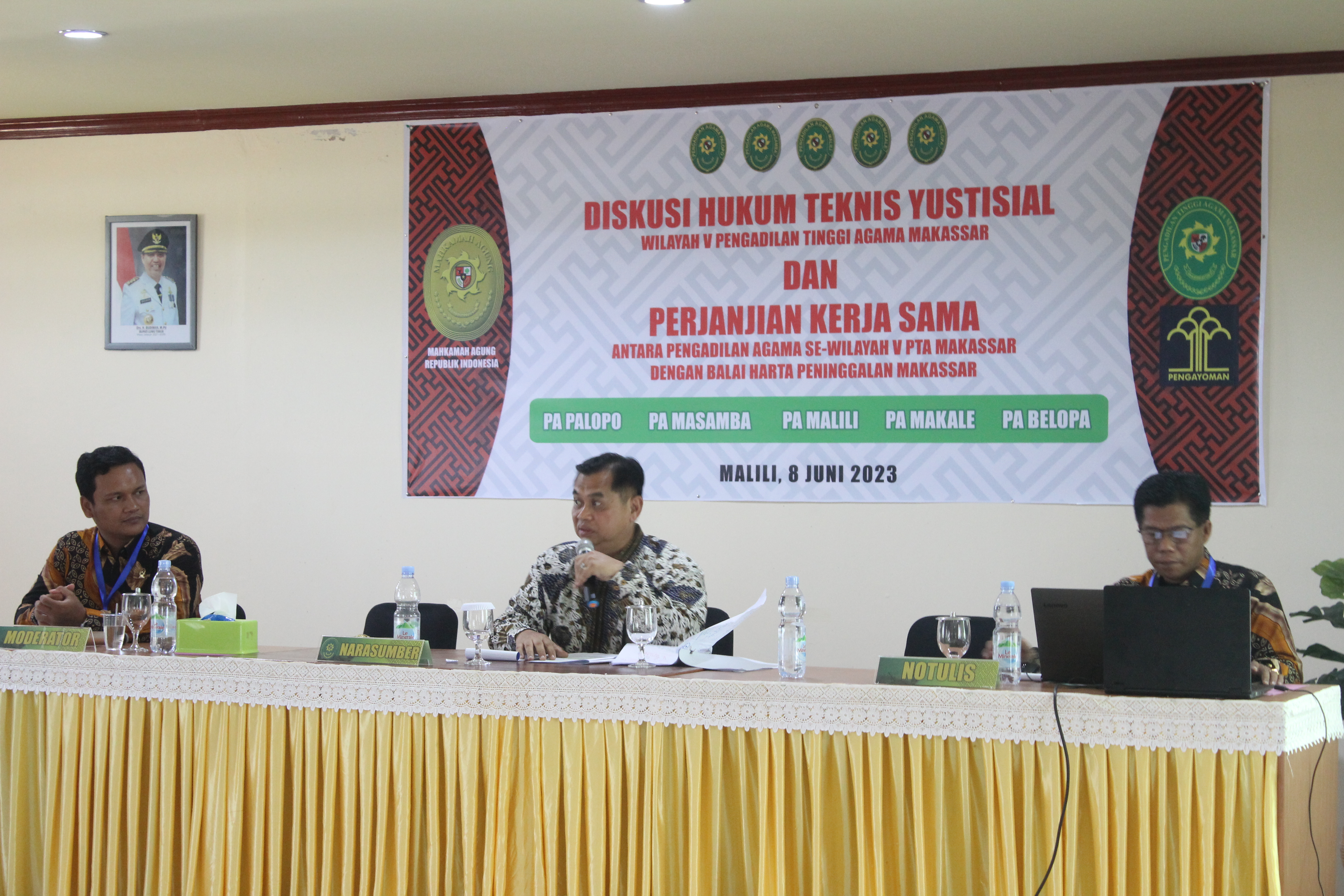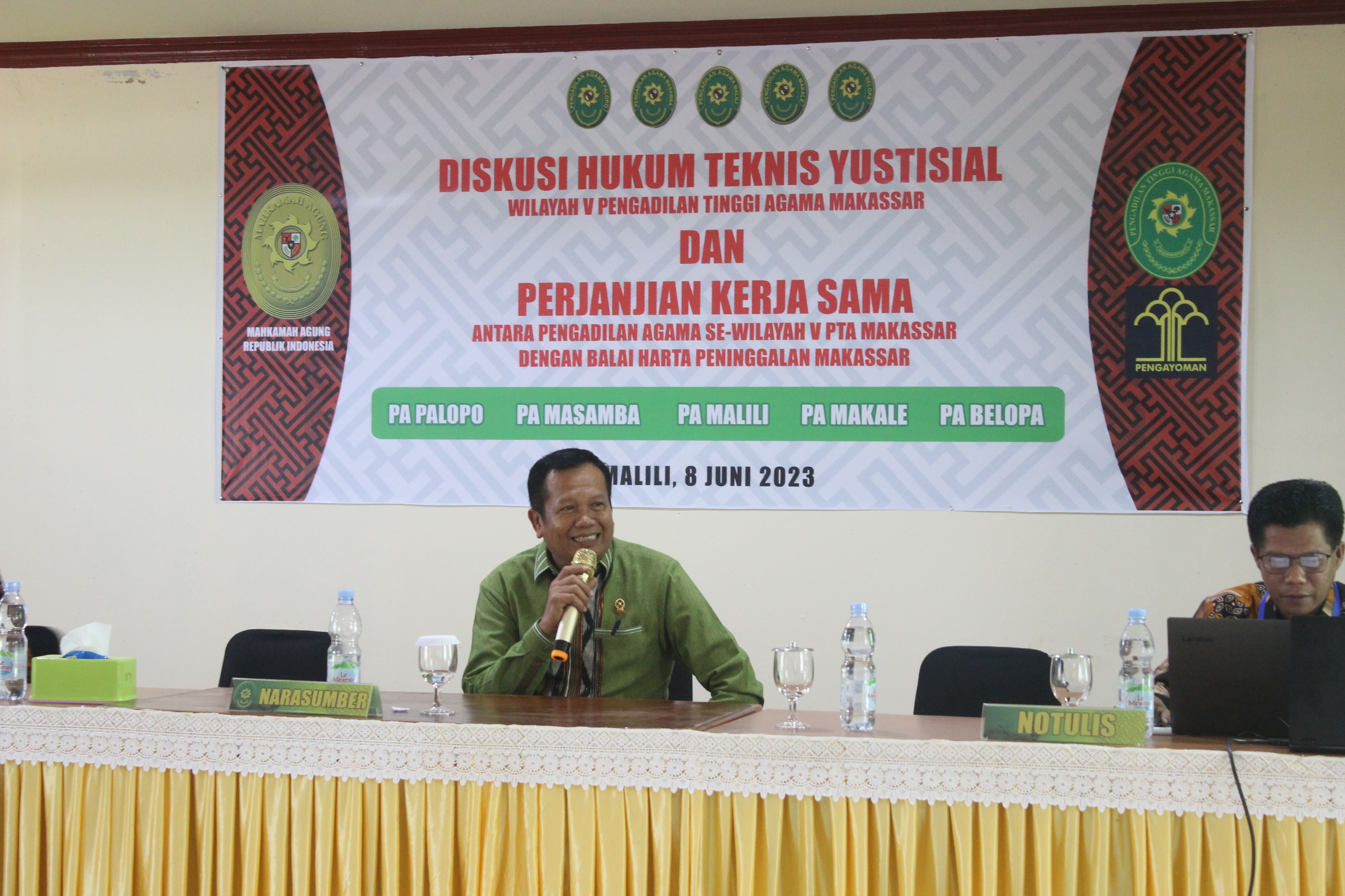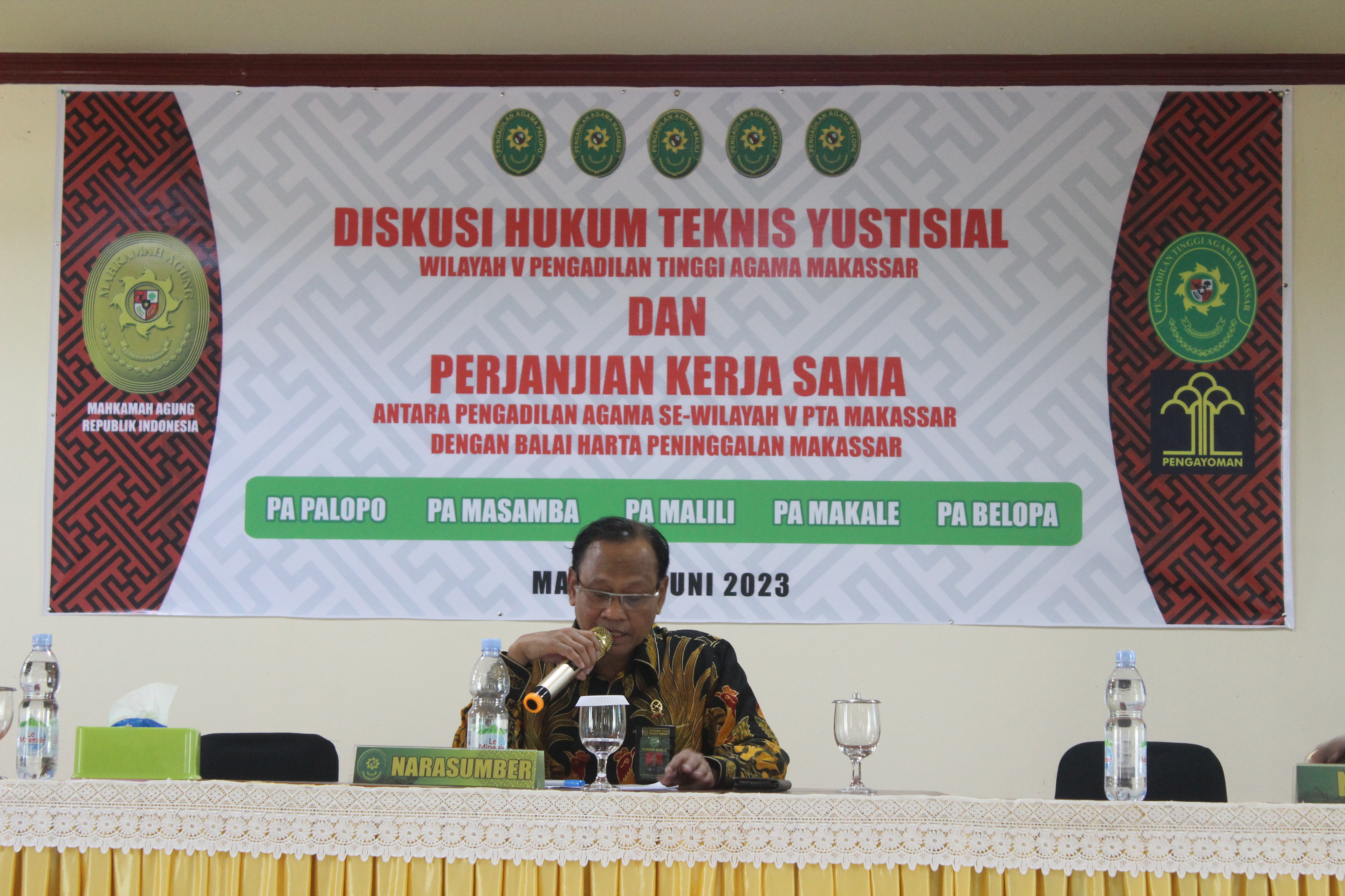 Malili, Kamis, 8 Juni 2023- Muh. Hasyim, Lc. Membawakan makalah dalam forum diskusi Hukum WIlayah V PTA Makassar yang diselenggarakan di Hotel Lagaligo, Malili, Luwu Timur.