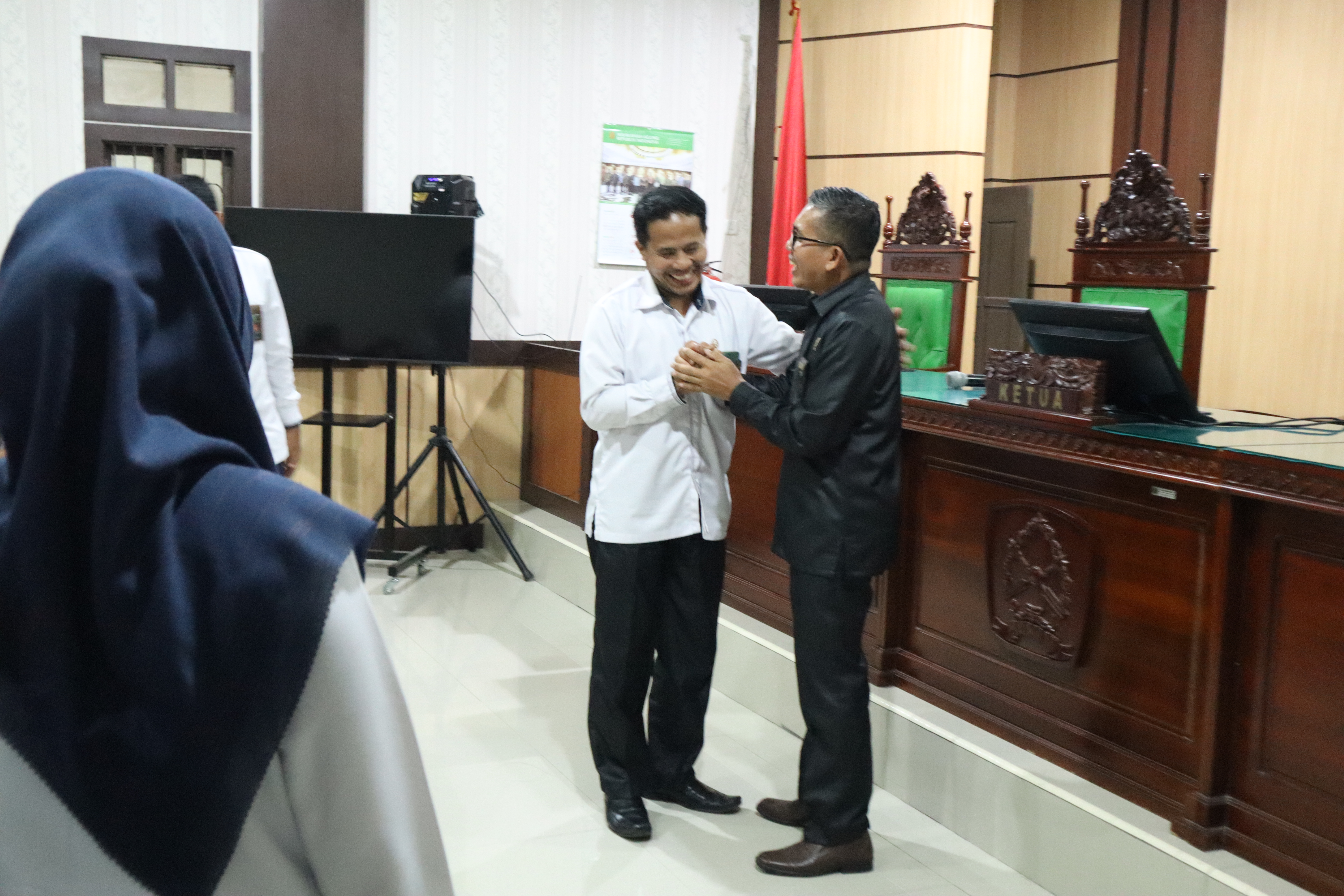 Bapak Asis mengucapkan Terima kasih kepada Ketua PA Palopo dan rekan-rekan yang sudah berkenan mengantarkan ke PA Masamba. Beliau juga menyampaikan Terima kasih kepada teman-teman PA Masamba yang mempersiapkan segala sesuatunya. Diantaranya hadir Ketua Pengadilan Agama Palopo Bapak Tommy, S.H.I. didampingi Panitera, Sekretaris serta Pejabat Fungsional maupun Struktural Pengadilan Agama Palopo.