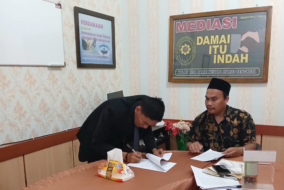 Mediator Pengadilan Agama Masamba, Fauzi Ahmad Badrul Fuad, S.H.I., M.H. Kembali berhasil mendamaikan kedua pihak yang bersengketa pada Nomor Perkara 335/Pdt.G/2024/PA.Msb dalam Perkara Harta Bersama. Mediasi yang sudah kali ketiga ini alhamdulillah membuahkan hasil positif bagi kedua pihak berperkara. Bersama kuasa hukum masing-masing pihak Penggugat maupun Tergugat dengan kerelaan hati dan keikhlasan dapat menghasilkan putusan yang berkeadilan bagi semuanya.