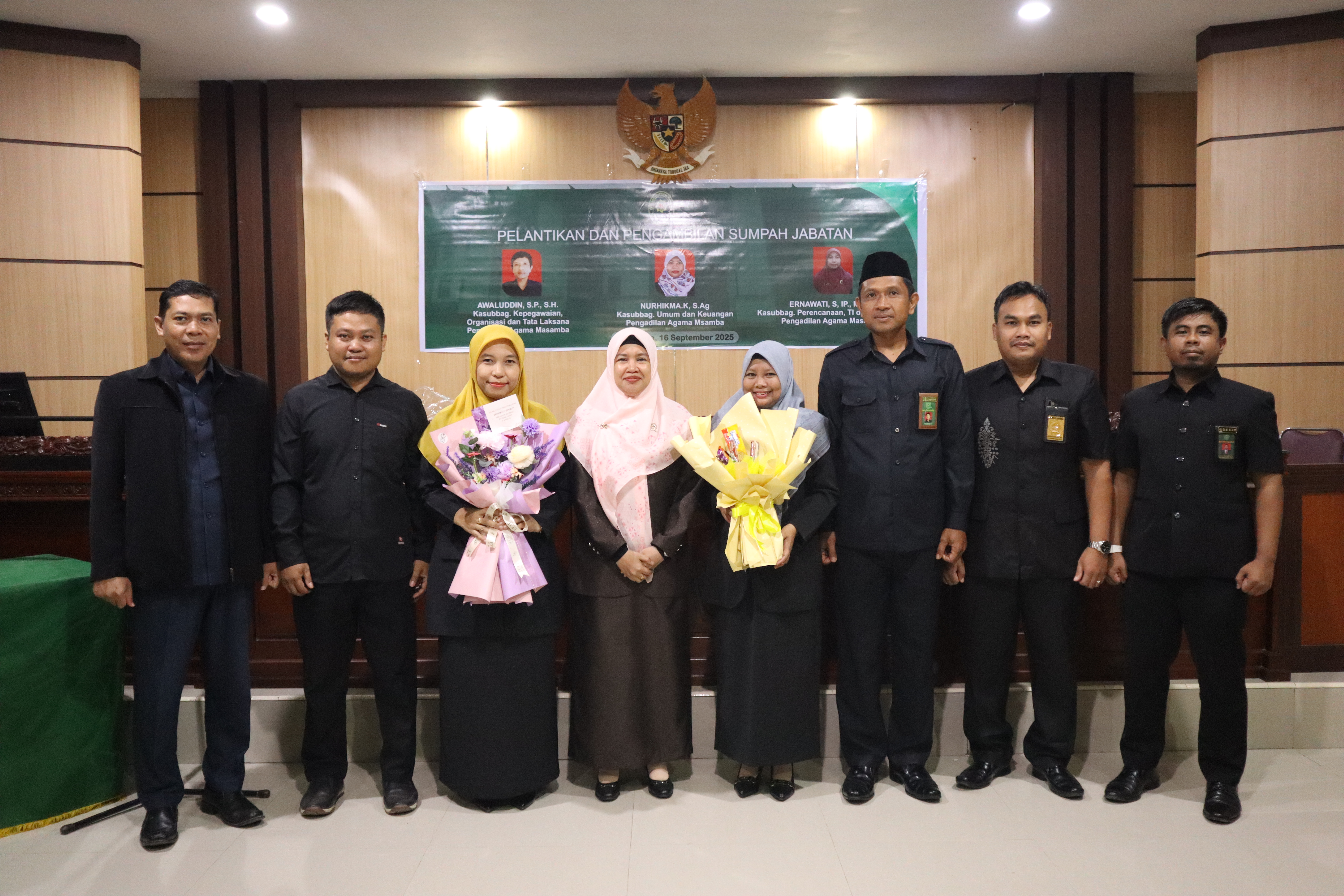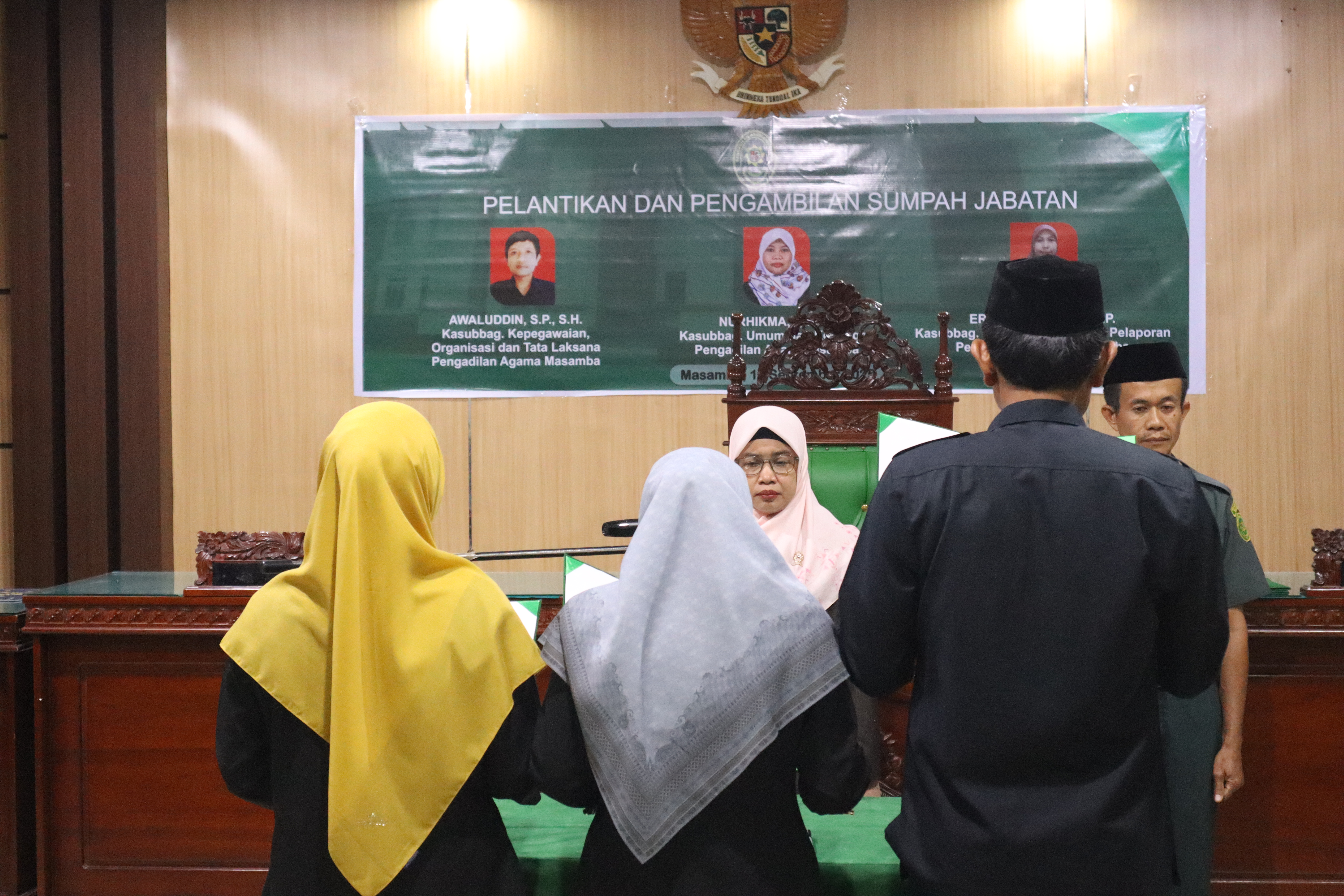 Pada acara pelantikan yang berlangsung tiga pejabat baru dilantik, yaitu: Bapak Awaluddin, S.P., S.H., M.H. yang sebelumnya menjabat sebagai Kepala Subbagian Umum dan Keuangan, kini dipercaya sebagai Kepala Subbagian Kepegawaian, Organisasi dan Tata Laksana Pengadilan Agama Masamba; Ibu Nurhikma, S.Ag. yang sebelumnya menjabat sebagai Kepala Subbagian Kepegawaian, Organisasi dan Tata Laksana kini mengemban amanah sebagai Kepala Subbagian Umum dan Keuangan Pengadilan Agama Masamba; serta Ibu Ernawati, S.IP., M.A.P. yang sebelumnya menjabat sebagai Kepala Subbagian PTIP Pengadilan Agama Malili, kini resmi menjabat sebagai Kepala Subbagian PTIP Pengadilan Agama Masamba.