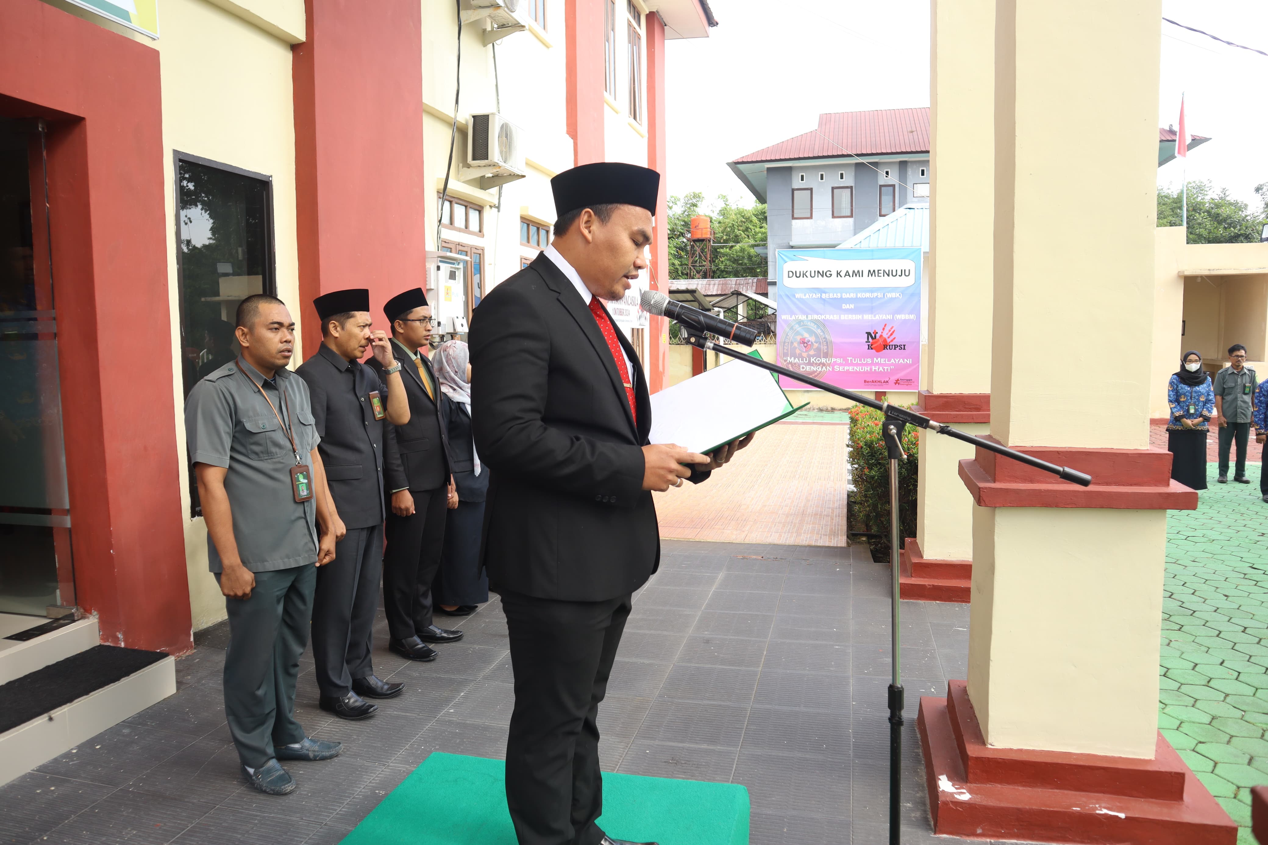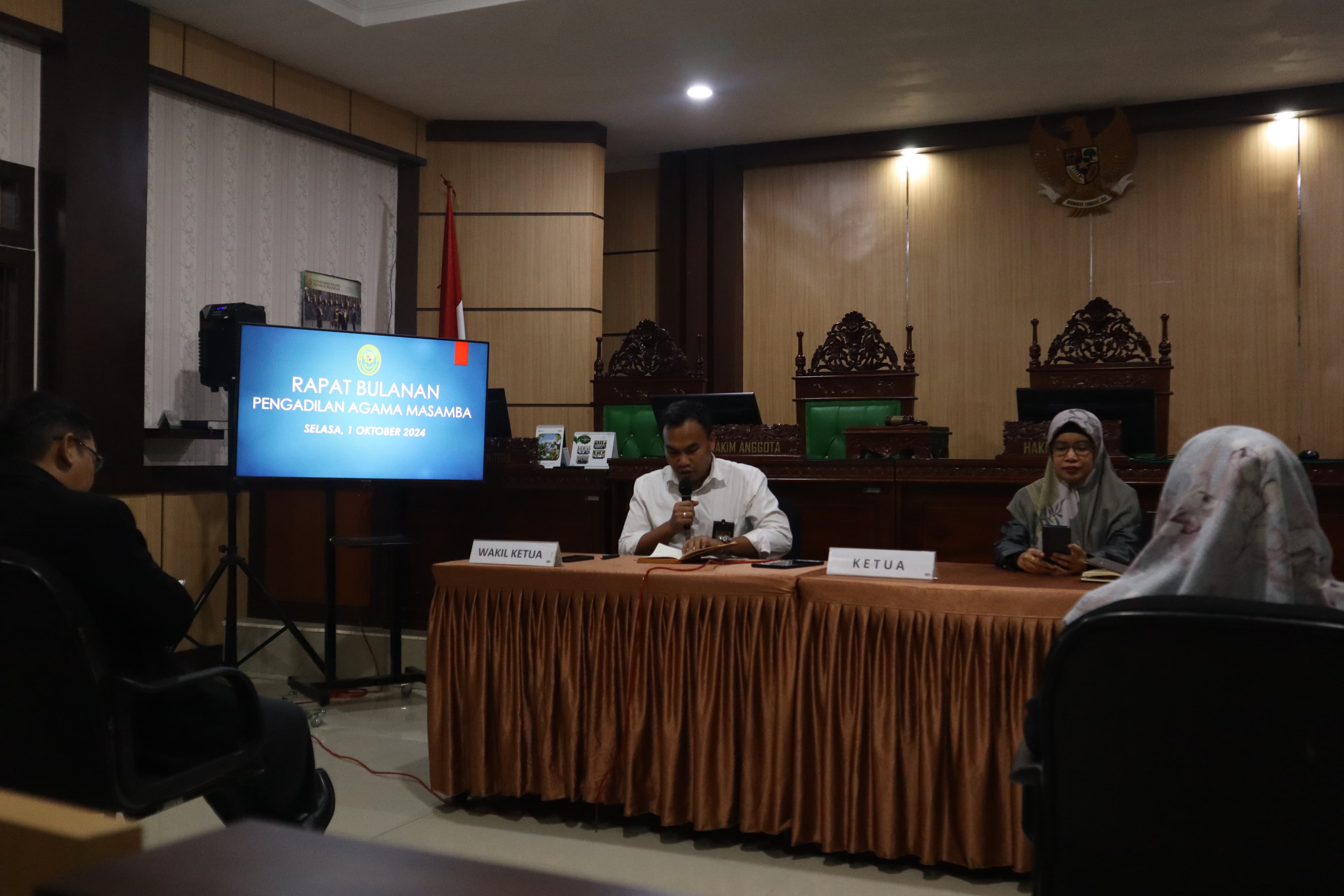 Ketua Pengadilan Agama Masamba, Nirwana, S.H.I., M.H. didampingi Wakil Ketua Pengadilan Agama Masamba, Fauzi Ahmad Badrul Fuad, S.H.I., M.H. memimpin Rapat Bulanan Pengadilan Agama Masamba.