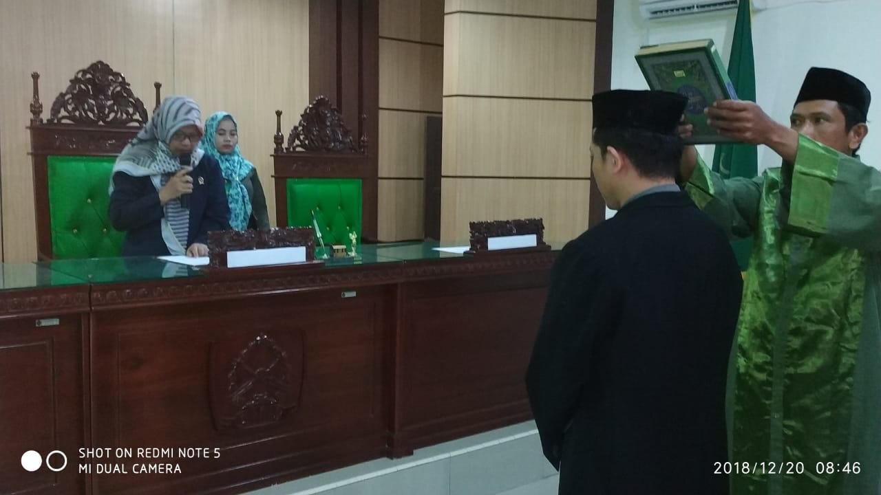 Kamis 20 Desember 2018 bertempat di Ruang Sidang Utama Pengadilan Agama Masamba. Dilaksanakan pengambilan sumpah jabatan dan pelantikan Saudara Alfis Razak, S.E.I., Sebagai Panitera Muda Permohonan yang sebelumnya menjabat sebagai panitera Pengganti pada Pengadilan Agama Masamba, menggantikan jabatan Panitera Muda Permohoan Saudara Sulfian, S.Ag yang mutasi ke Pengadilan Agama Belopa yang telah kosong lebih kurang dua bulan ini.