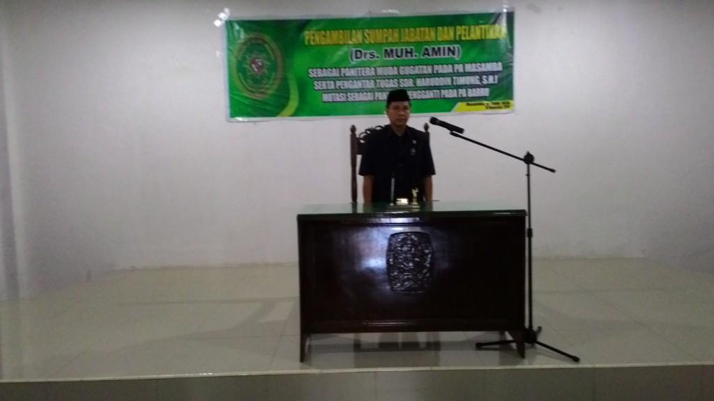 Kamis, 10 Nopember 2016 pukul 11.00 Wita dilangsungkan acara Pengambilan Sumpah Jabatan Pelantikan Panitera Muda Gugatan serta Pengantar tugas Pengawai Pengadilan Agama Masamba yang dipimpin langsung oleh Ketua Pengadilan Agama Drs. Muhammad Ridwan, SH., MH.