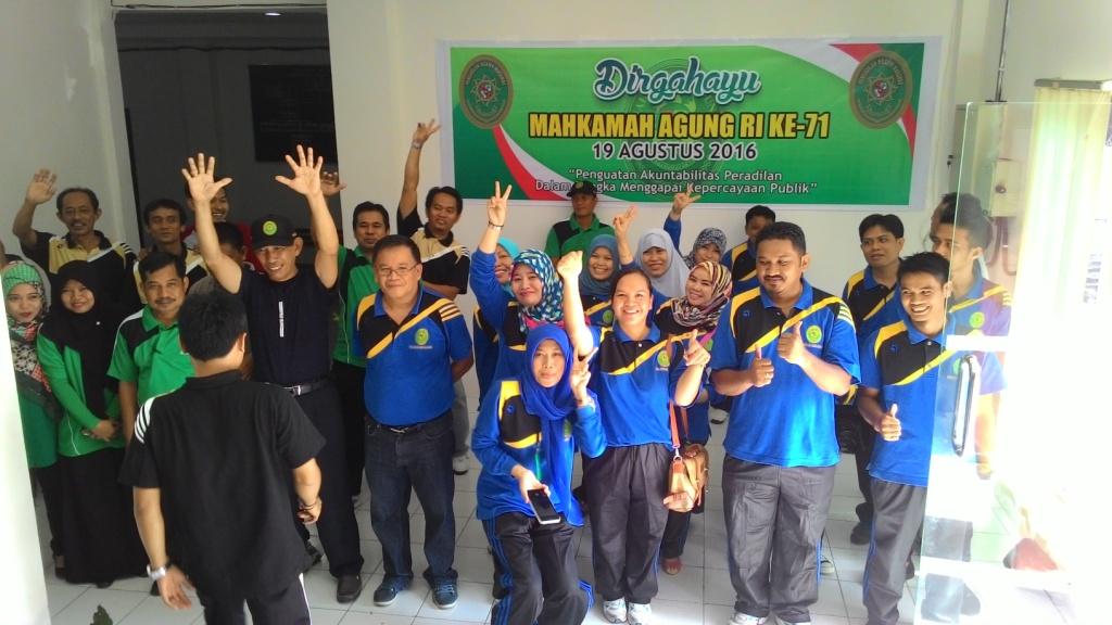 Jum’at, tanggal 19 Agustus 2016 pukul 08.00 wib, bertempat di halaman Pengadilan Agama Masamba, Pengadilan Agama Masamba dan Pengadilan Negeri Masamba melaksanakan upacara pengibaran bendera merah putih dalam rangka memperingati Hari Ulang Tahun Ke-71 Mahkamah Agung Republik Indonesia dengan tema “Penguatan Akuntabilitas Peradilan Dalam Rangka Menggapai Kembali Kepercayaan Publik”.