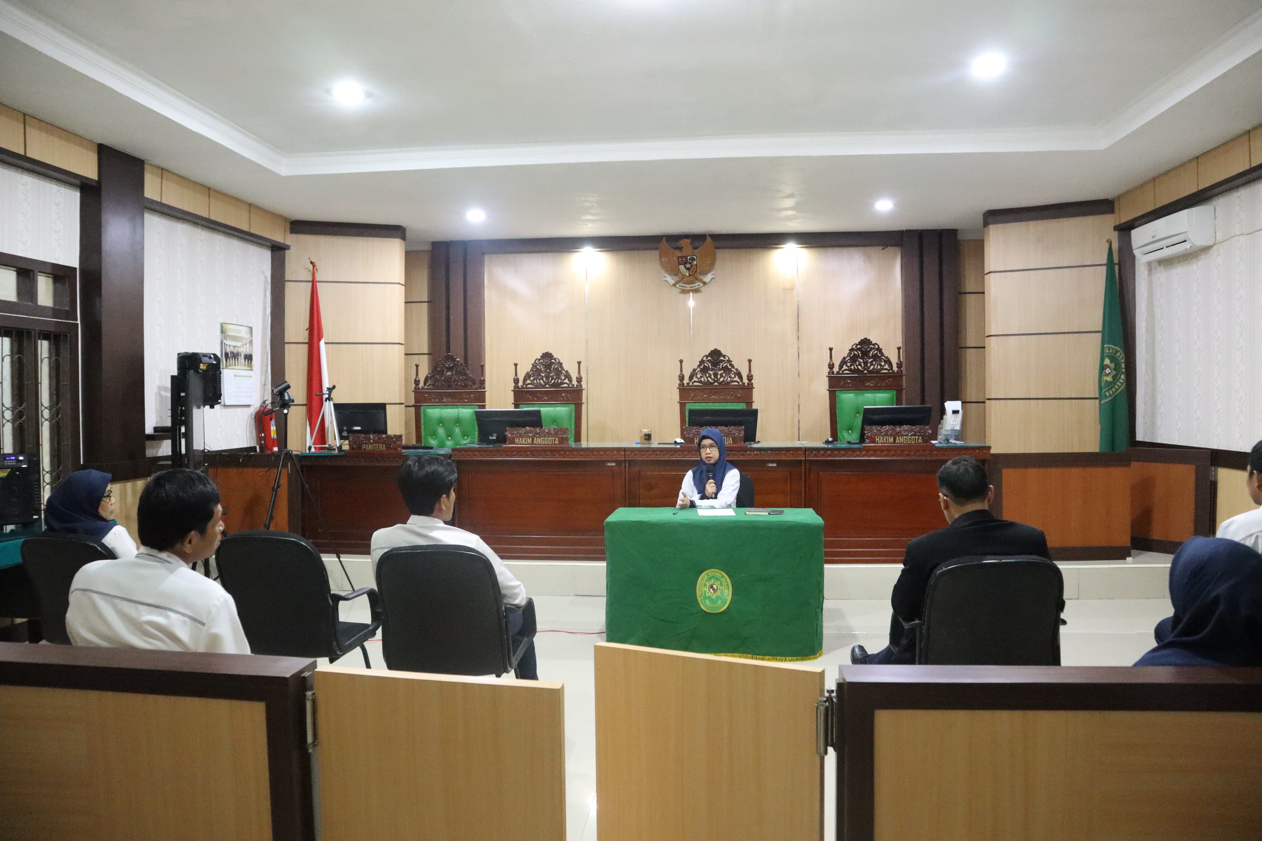 Di ruang Sidang Utama Pengadilan Agama Masamba, Majelis A yang dipimpin oleh Ketua Pengadilan Agama Masamba Nirwana, S.H.I., M.H. melaksanakan Sidang Teleconference melalui Zoom Meeting