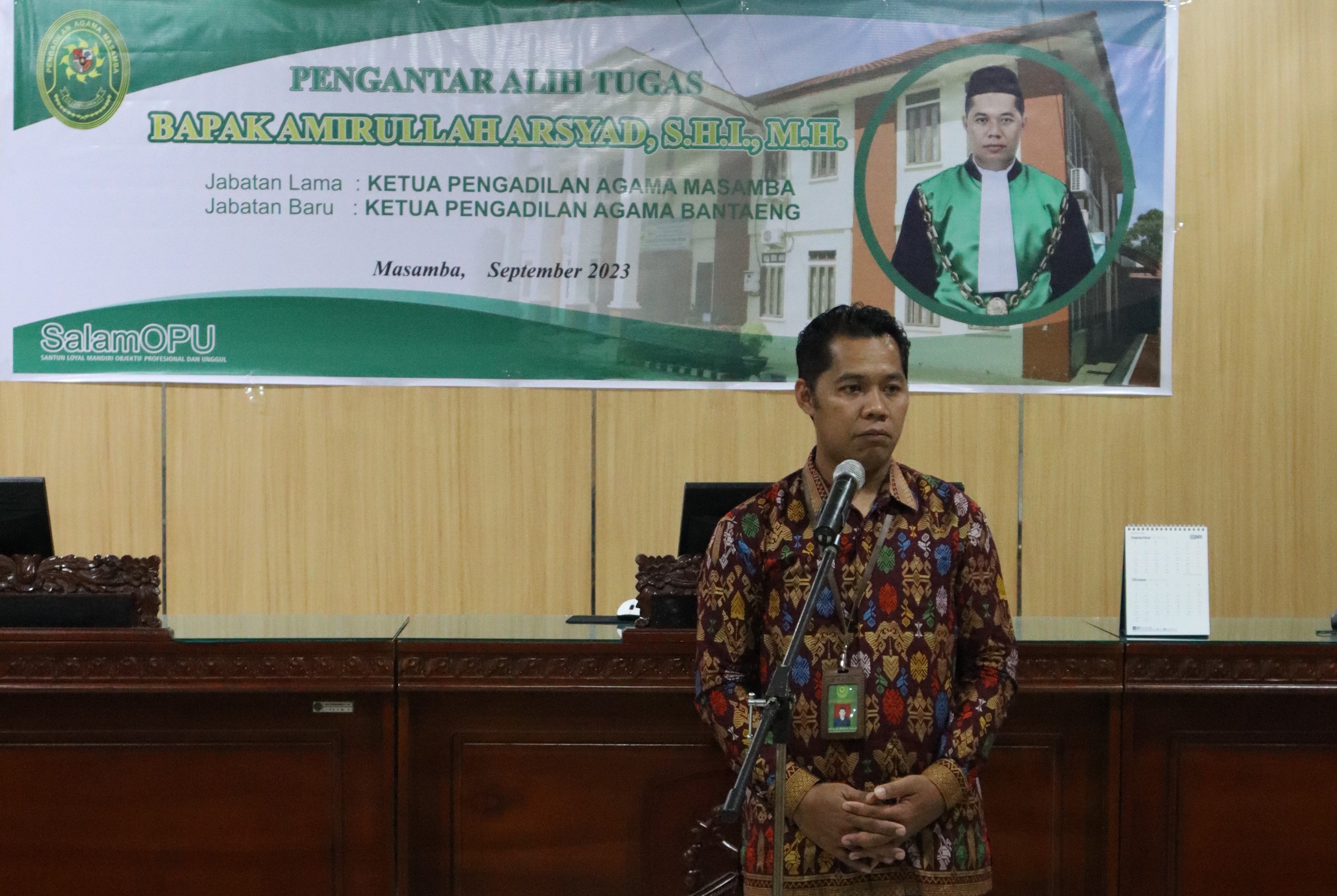 Amirullah Arsyad, S.H.I.,.M.H. Ketua Pengadilan Agama Masamba yang akan segera meninggalkan Pengadilan Agama Masamba untuk dilantik menjadi Ketua Pengadilan Agama Bantaeng di Pengadilan Tinggi Agama Makassar Jumat, 15 September 2023.